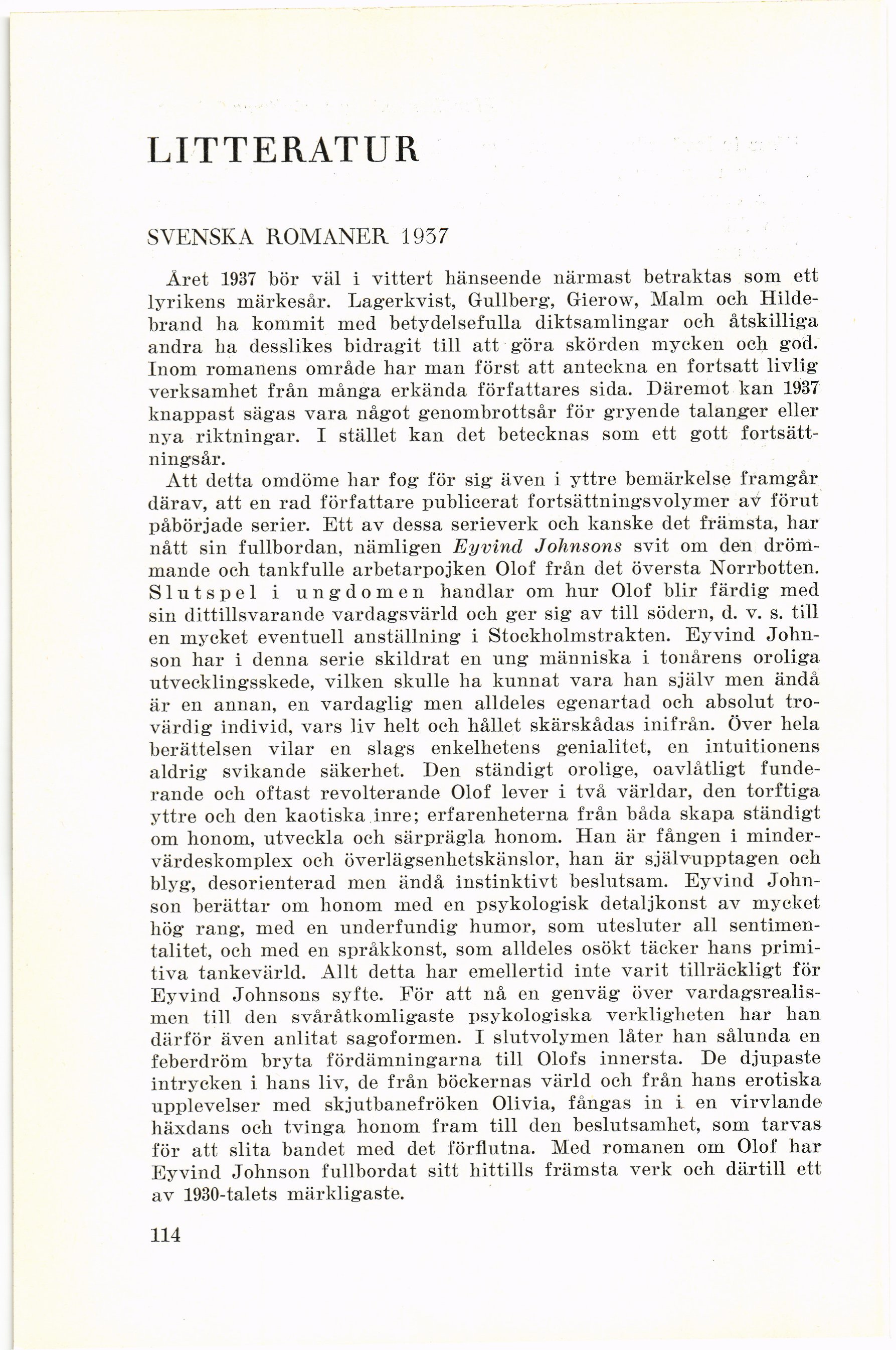 nått sin fullbordan, nämligen Eyvind Johnsons svit om den