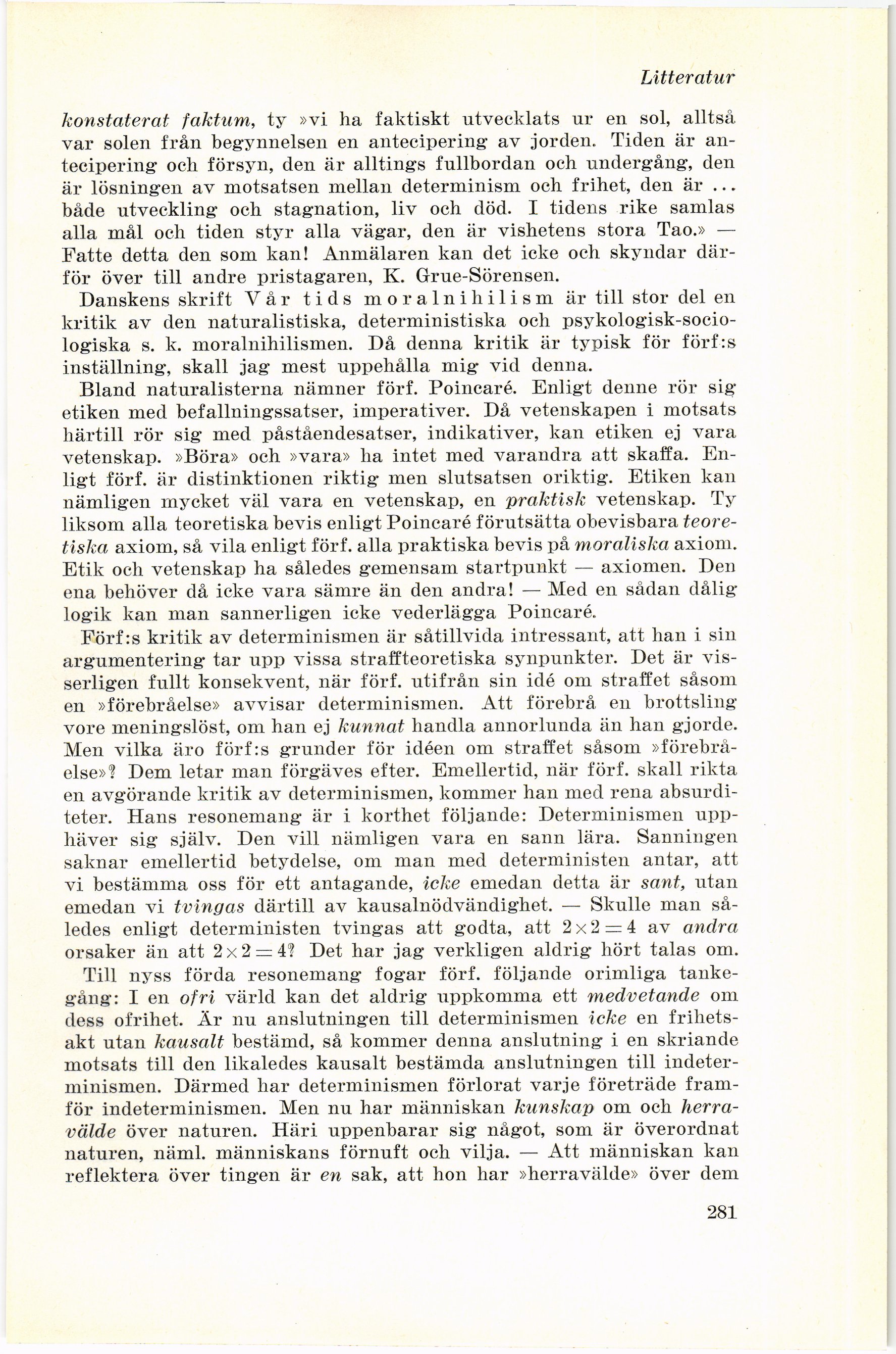 Förf :s kritik av determinismen är såtillvida intressant, att han i sin
