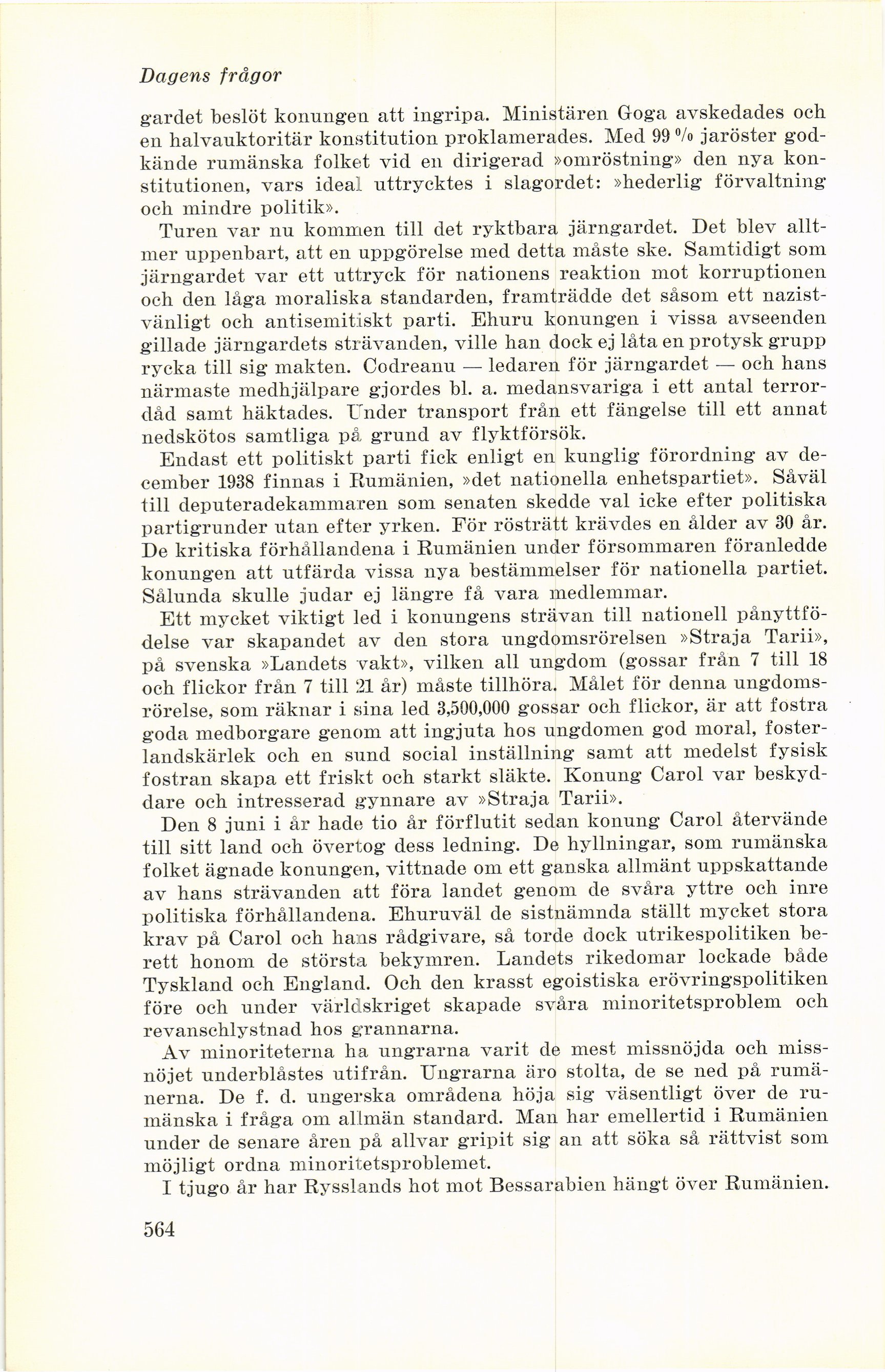 Full resolution (JPEG) - On this page / på denna sida - Häfte 8 - Dagens frågor 12 okt. 1940 - Storrumäniens upplösning — en nutidshistorisk revy. Av Pontus Reuterswärd