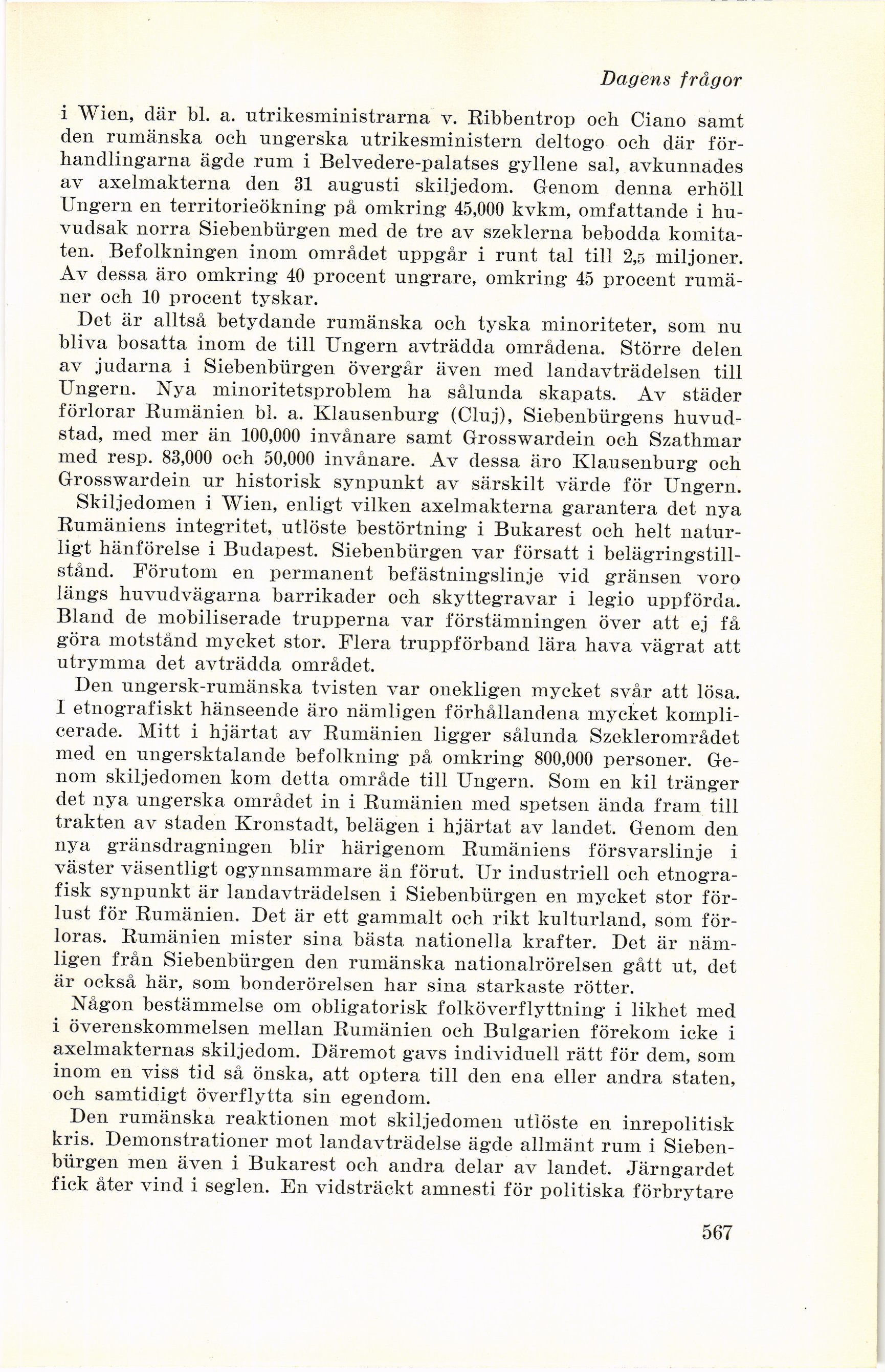 Full resolution (JPEG) - On this page / på denna sida - Häfte 8 - Dagens frågor 12 okt. 1940 - Storrumäniens upplösning — en nutidshistorisk revy. Av Pontus Reuterswärd