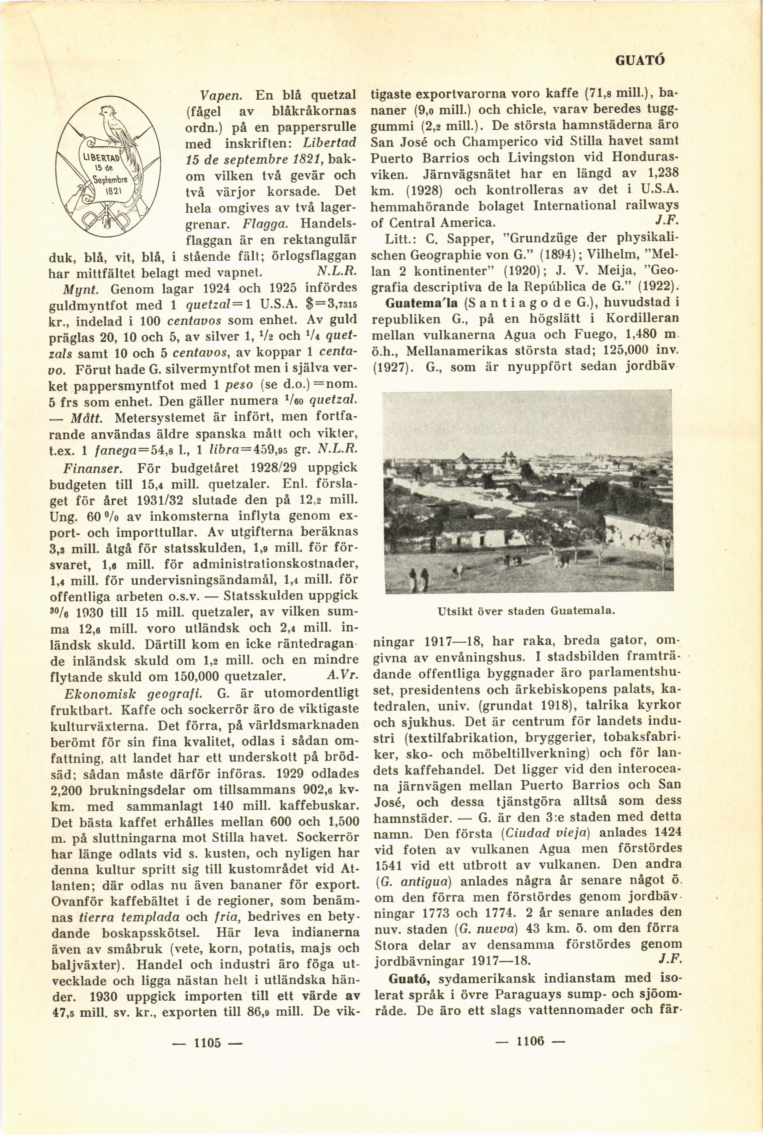 Full resolution (JPEG) - On this page / på denna sida - Guatemala - Vapen, flagga - Mynt, mått - Finanser - Ekonomisk geografi - Litt. - Guatemala (Santiago de) - Guató