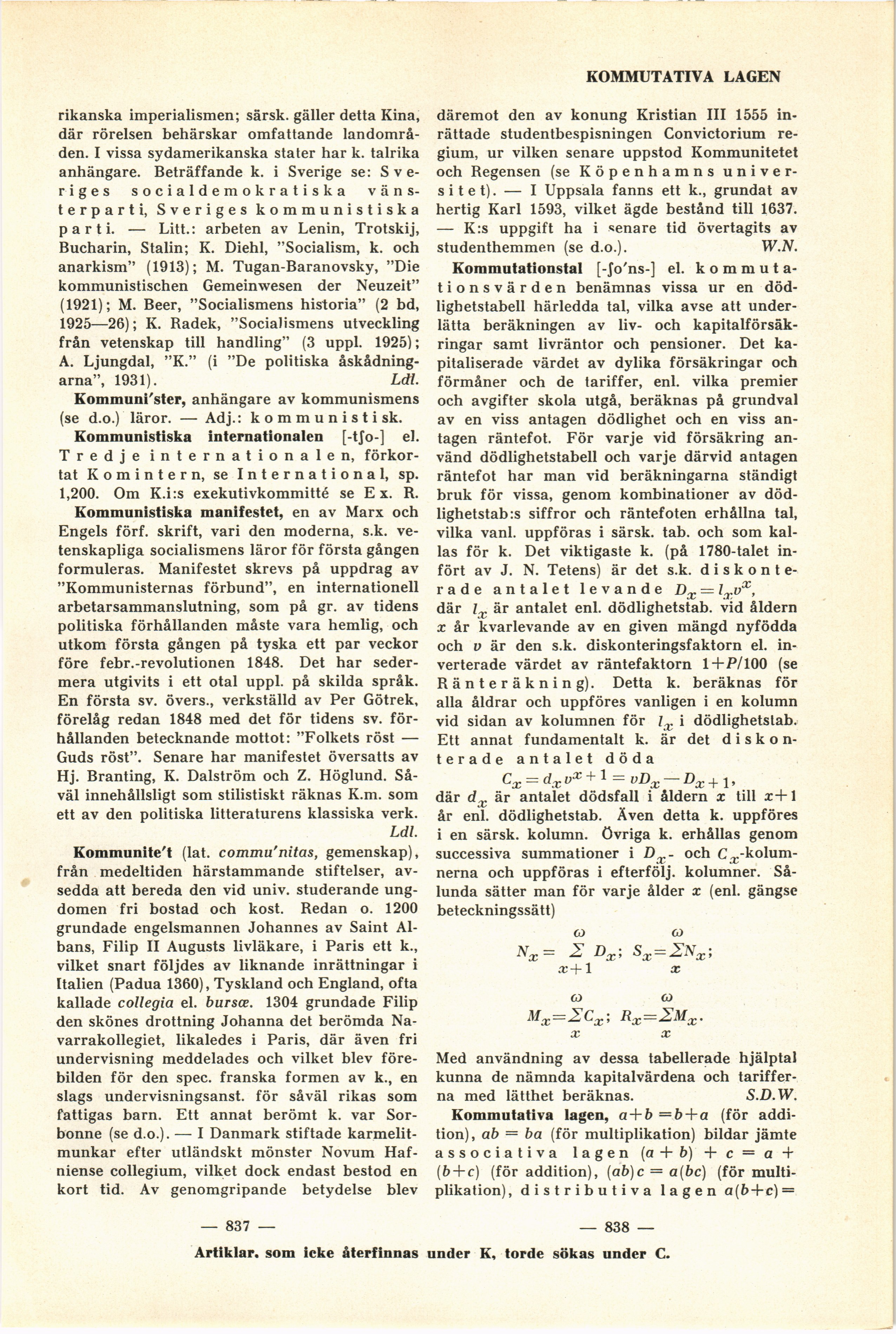 Full resolution (JPEG) - On this page / på denna sida - Kommunism - Kommunister - Komminustiska internationalen - Kommunistiska manifestet - Kommunitet - Kommutationstal el. kommutationsvärden - Kommutativa lagen