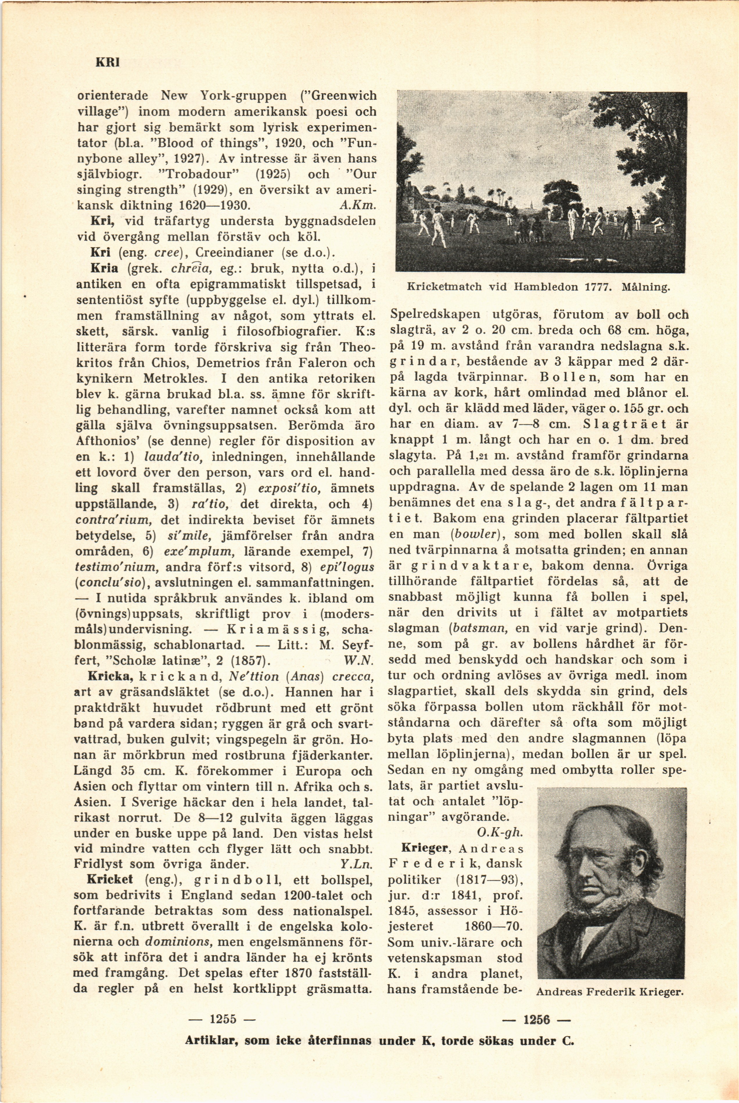 Full resolution (JPEG) - On this page / på denna sida - Kreymborg, Alfred - Kri (fartyg) - Kri (indianer) - Kria - Kricka, krickand - Kricket, grindboll - Krieger, Andreas Frederik