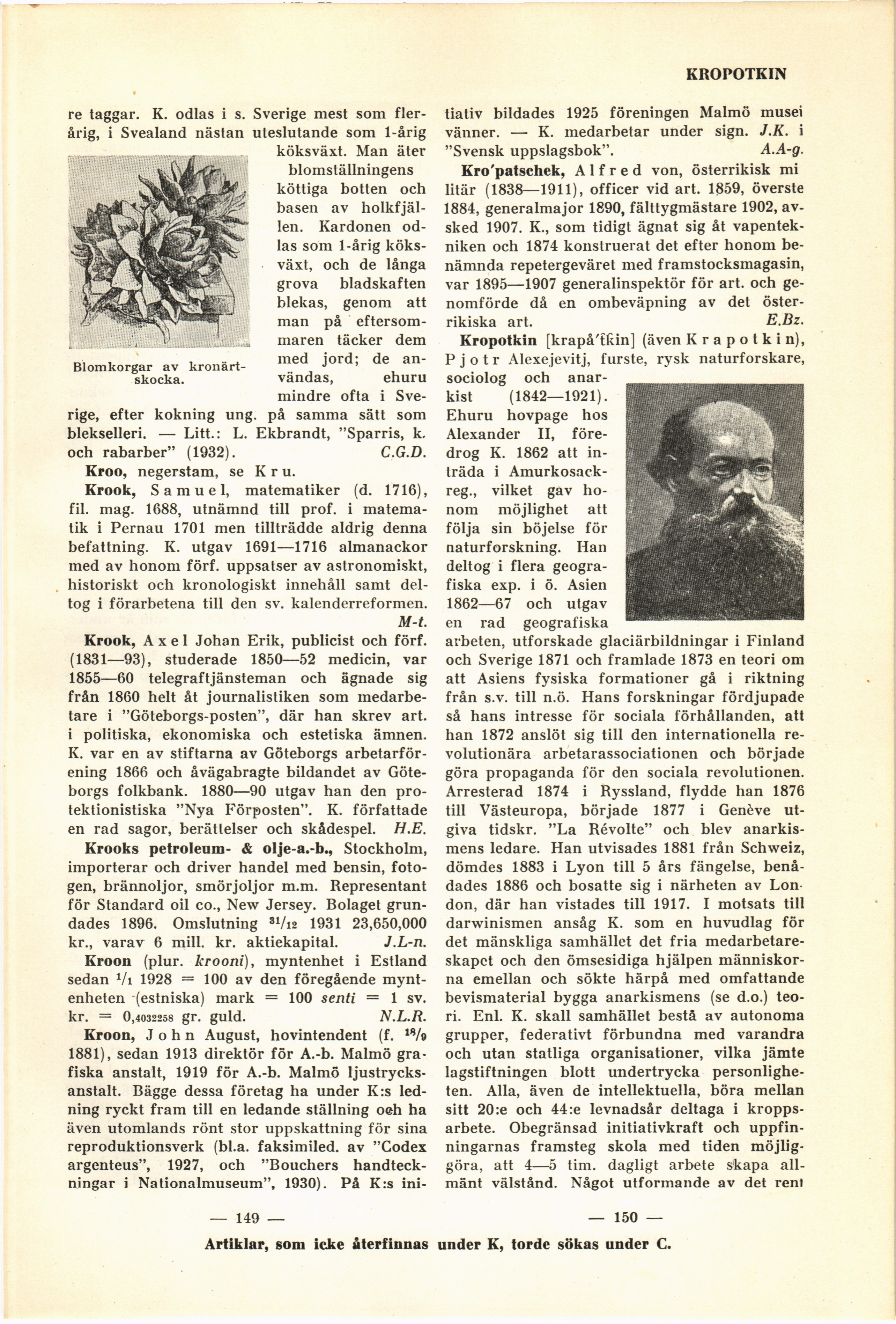 Full resolution (JPEG) - On this page / på denna sida - Kronärtskocka - Kroo - Krook, Samuel - Krook, Axel - Krooks petroleum- & olje-a.-b. - Kroon - Kroon, John - Kropatschek, Alfred von - Kropotkin (Krapotkin), Pjotr