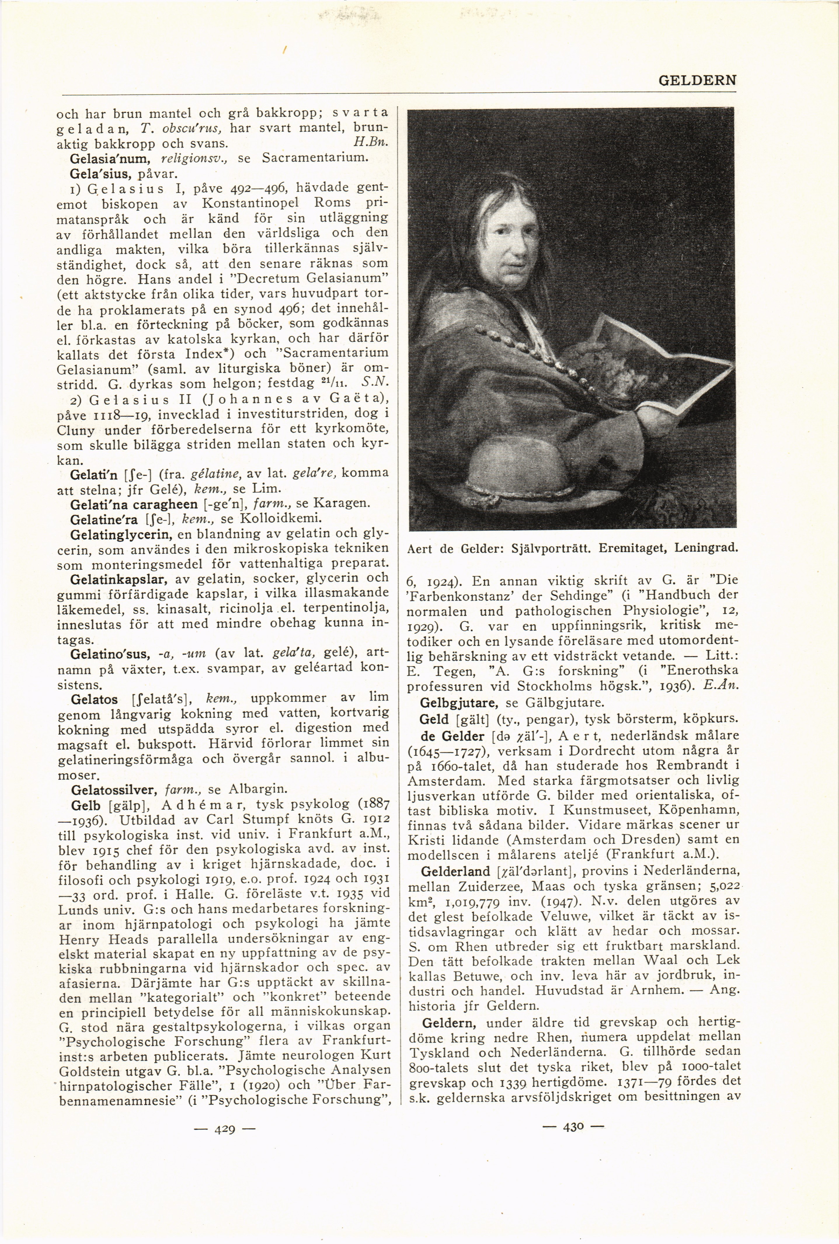 Full resolution (JPEG) - On this page / på denna sida - Gelador, djelador - Gelasianum - 1. Gelasius I (påve) - 2. Gelasius II (Johannes av Gaëta, påve) - Gelatin - Gelatina caragheen - Gelatinera - Gelatinglycerin - Gelatinkapslar - Gelatinosus - Gelatos - Gelatossilver - Gelb, Adhémar - Gelbgjutare - Geld - de Gelder, Aert - Gelderland - Geldern