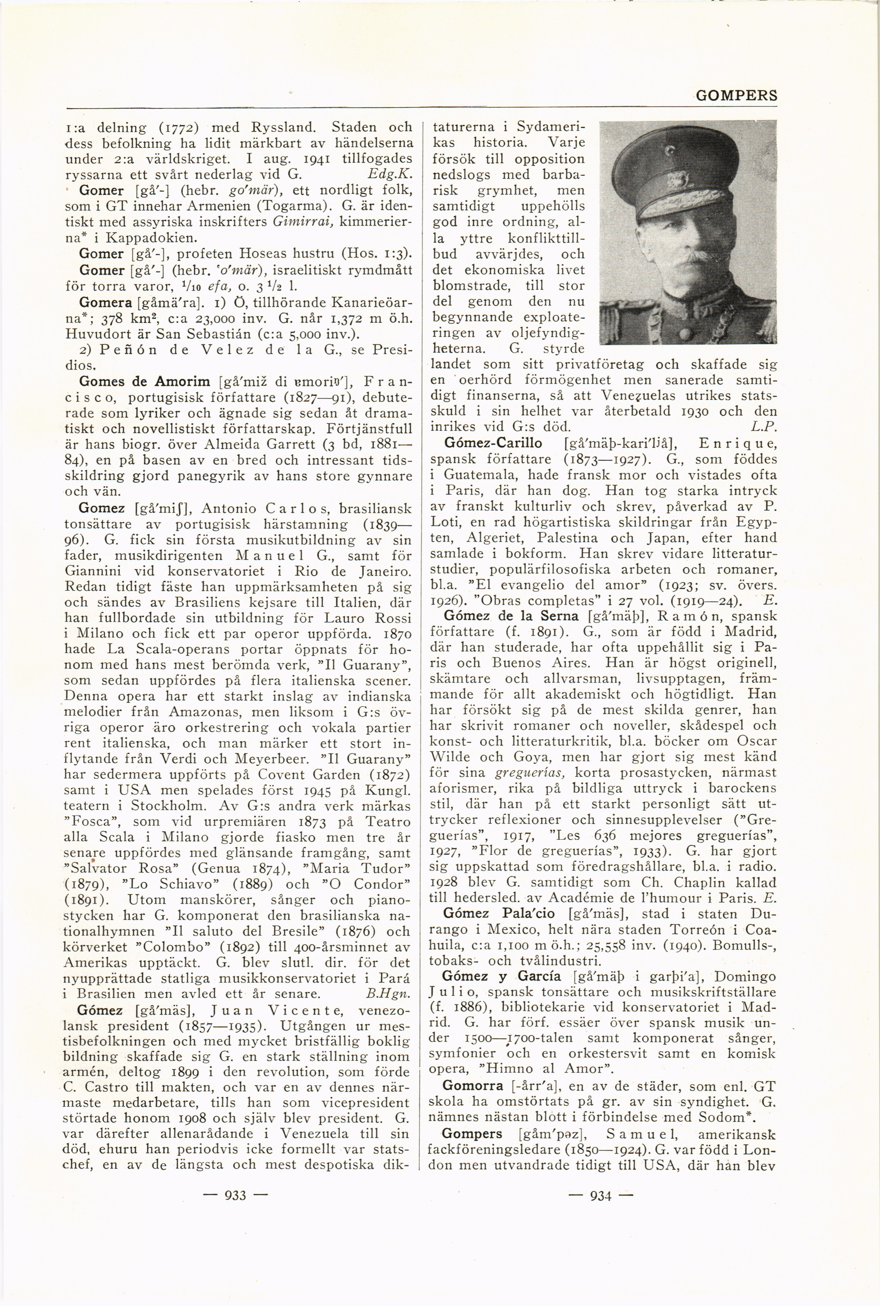 Full resolution (JPEG) - On this page / på denna sida - Gomel, Homel - Gomer (folk) - Gomer (hustru) - Gomer (rymdmått) - Gomera - Gomes de Amorim, Francisco - Gomez, Carlos - Gómez, Juan Vicente - Gómez-Carillo, Enrique - Gómez de la Serna, Ramón - Gómez Palacio - Gómez y García, Julio - Gomorra - Gompers, Samuel