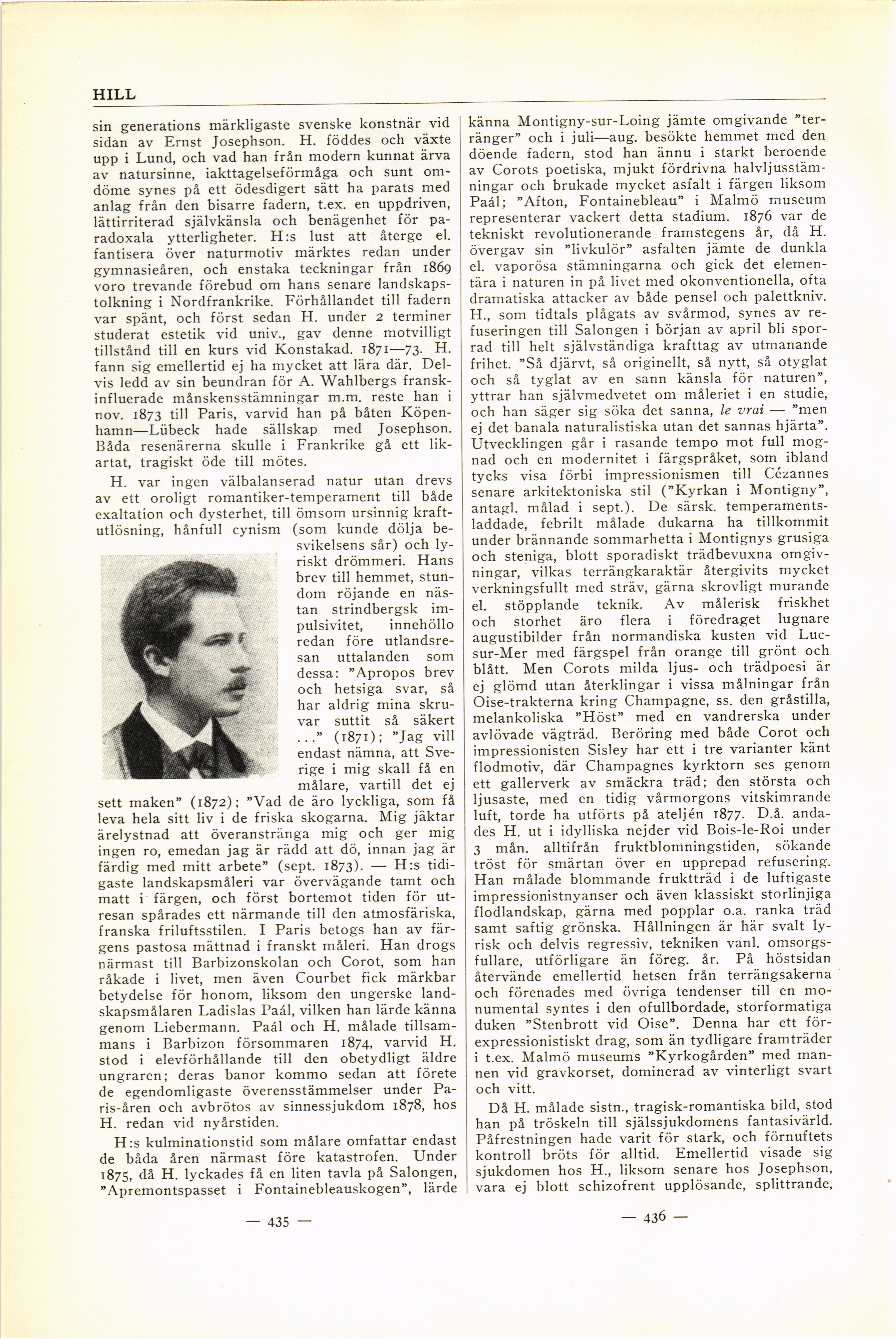 sidan av Ernst Josephson. H. föddes och växte