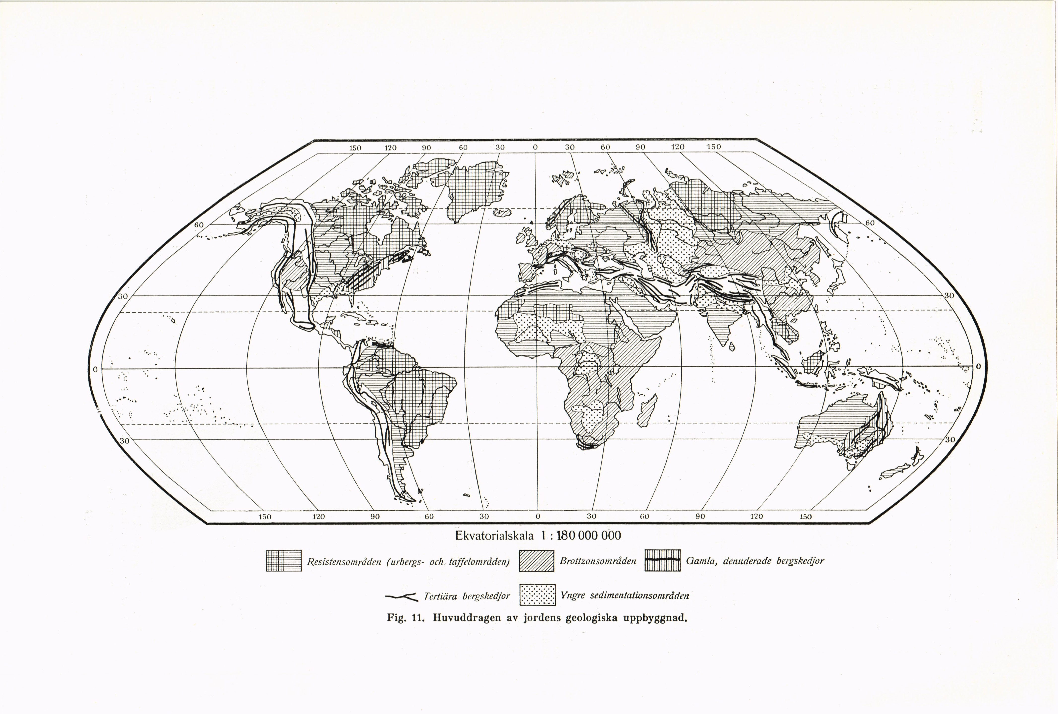 Fig. 11. Huvuddragen av jordens geologiska uppbyggnad.