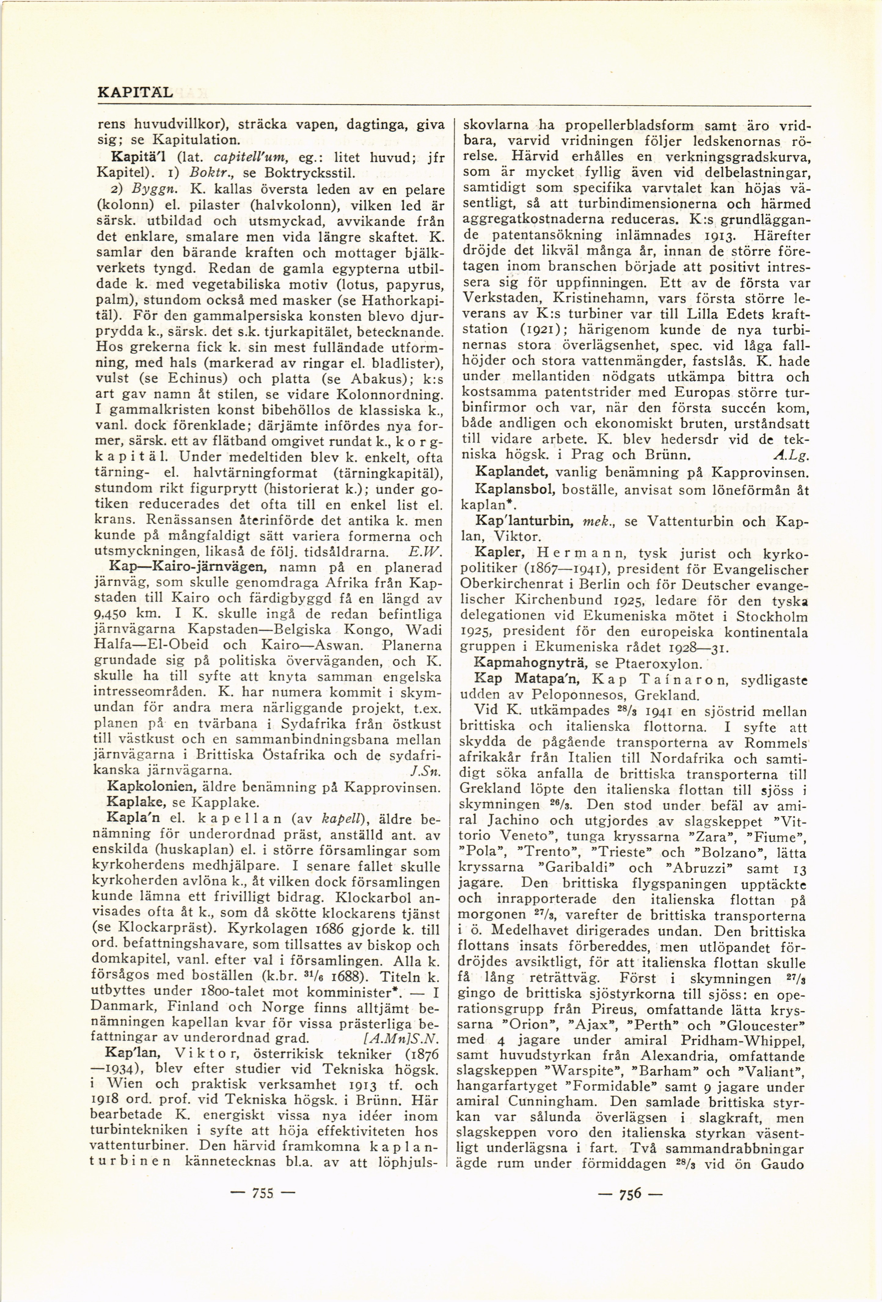 Full resolution (JPEG) - On this page / på denna sida - Kapitulera - Kapitäl - Kap—Kairo-järnvägen - Kapkolonien - Kaplake - Kaplan el. kapellan - Kaplan, Viktor - Kaplandet - Kaplansbol - Kaplanturbin - Kaler, Hermann - Kapmahognyträ - Kap Matapan, Kap Taínaron