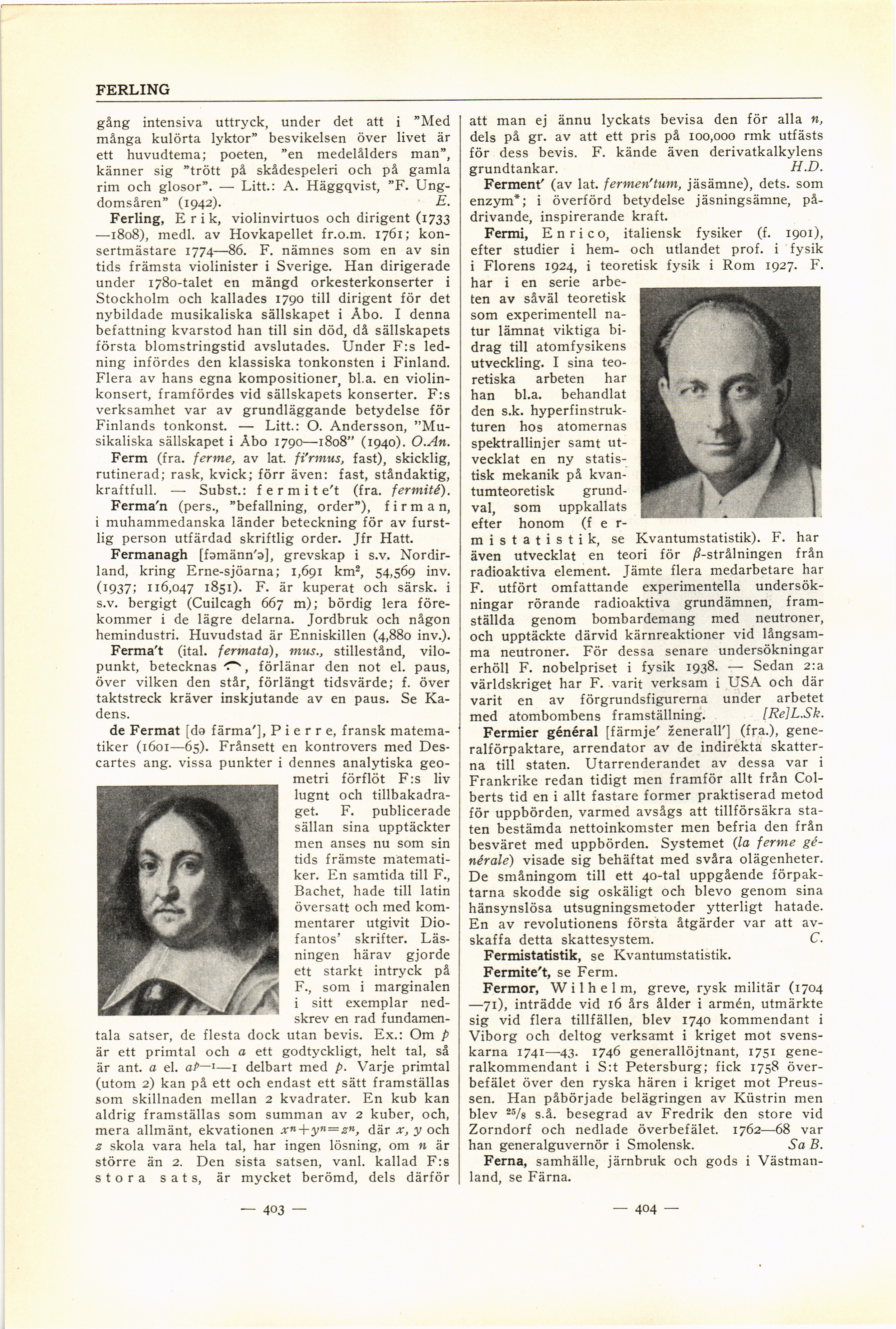 Full resolution (JPEG) - On this page / på denna sida - Ferlin, Nils - Ferling, Erik - Ferm - Ferman, firman - Fermanagh - Fermat - de Fermat, Pierre - Ferment - Fermi, Enrico - Fermier général - Fermistatistik - Fermitet - Fermor, Wilhelm - Ferna