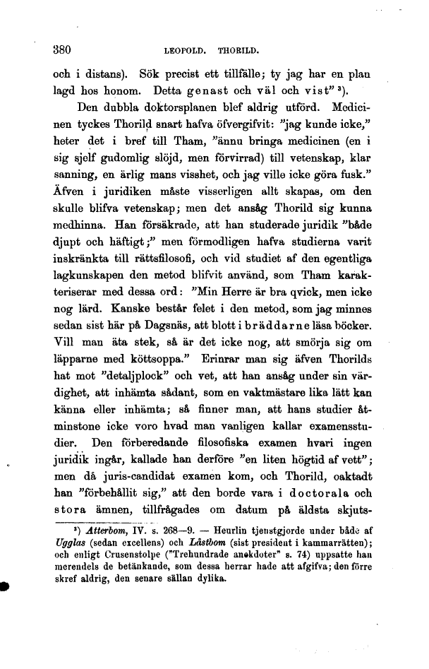 Medicinen tyckes Thorild snart hafva öfvergifvit: "jag kunde icke,"