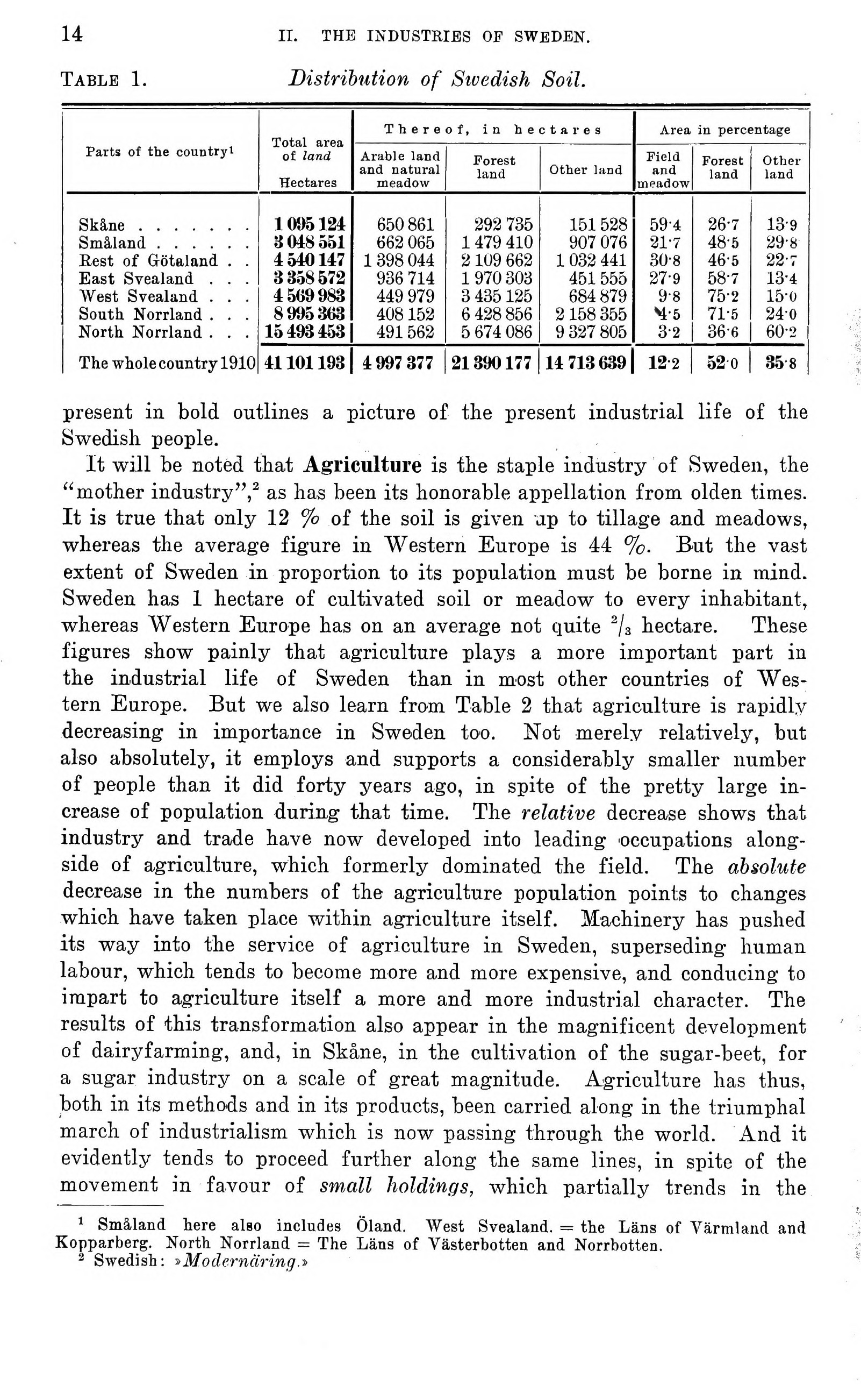 It will be noted that Agriculture is the staple industry of Sweden, the