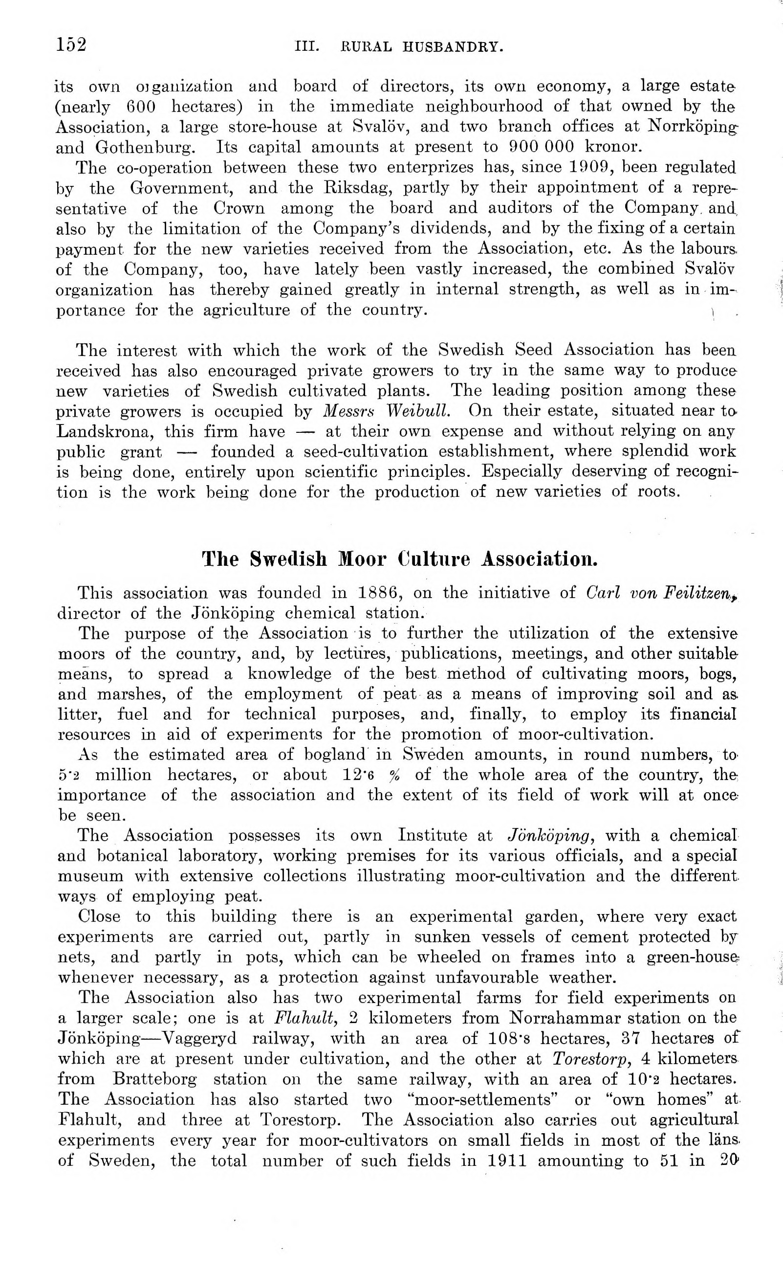 Full resolution (JPEG) - On this page / på denna sida - III. Rural Husbandry. Introd. by H. Juhlin Dannfelt - 4. Public and Private Institutions for the Advancement of Agriculture. Introd. by W. Flach - Sowing Seed Question. By Hj. Nilsson - Swedish Moor Culture Association. By Hj. von Feilitzen
