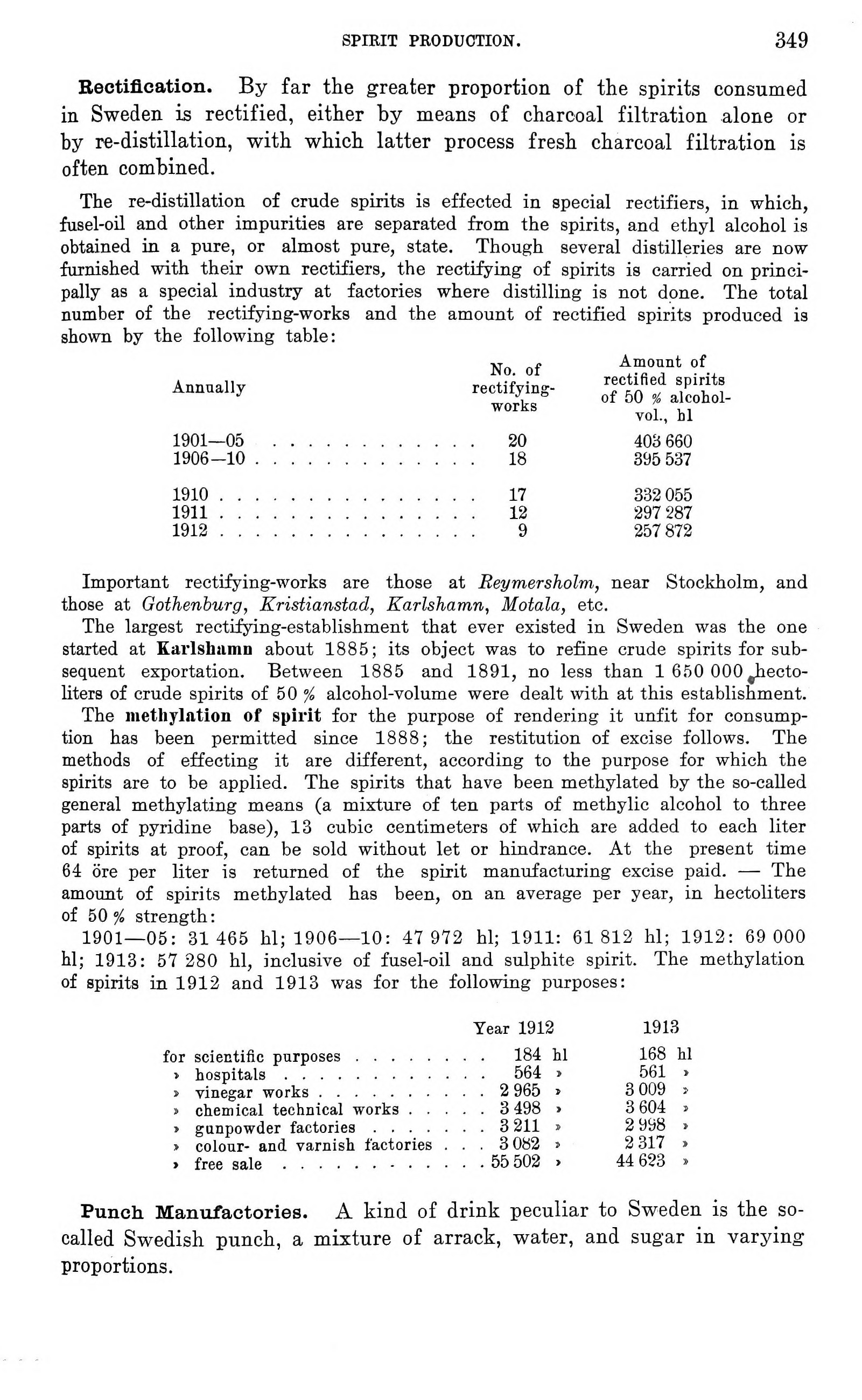 hi; 1913: 57 280 hi, inclusive of fusel-oil and sulphite spirit. The methylation
