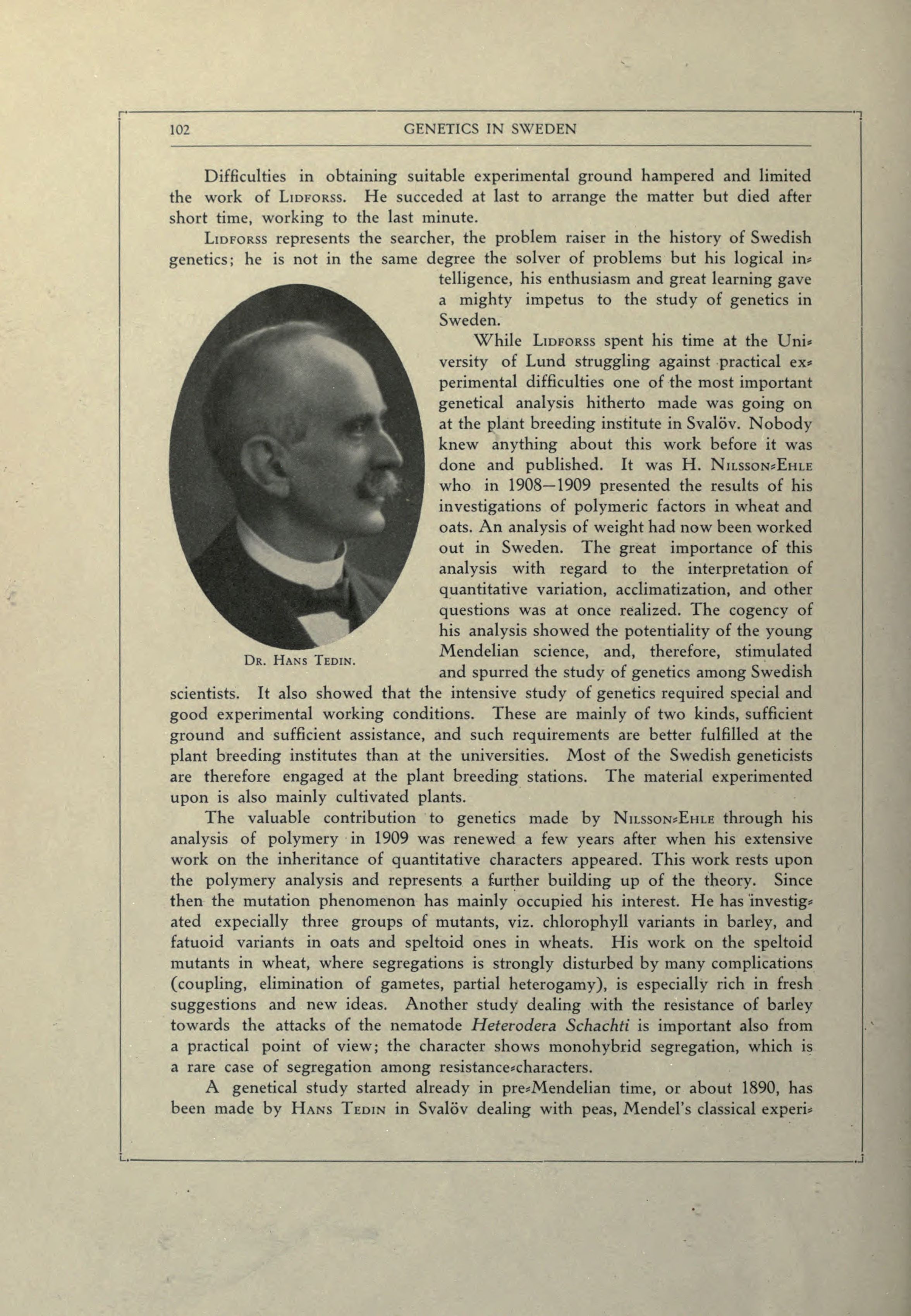been made by Hans Tedin in Svalöv dealing with peas, Mendel’s classical experi*