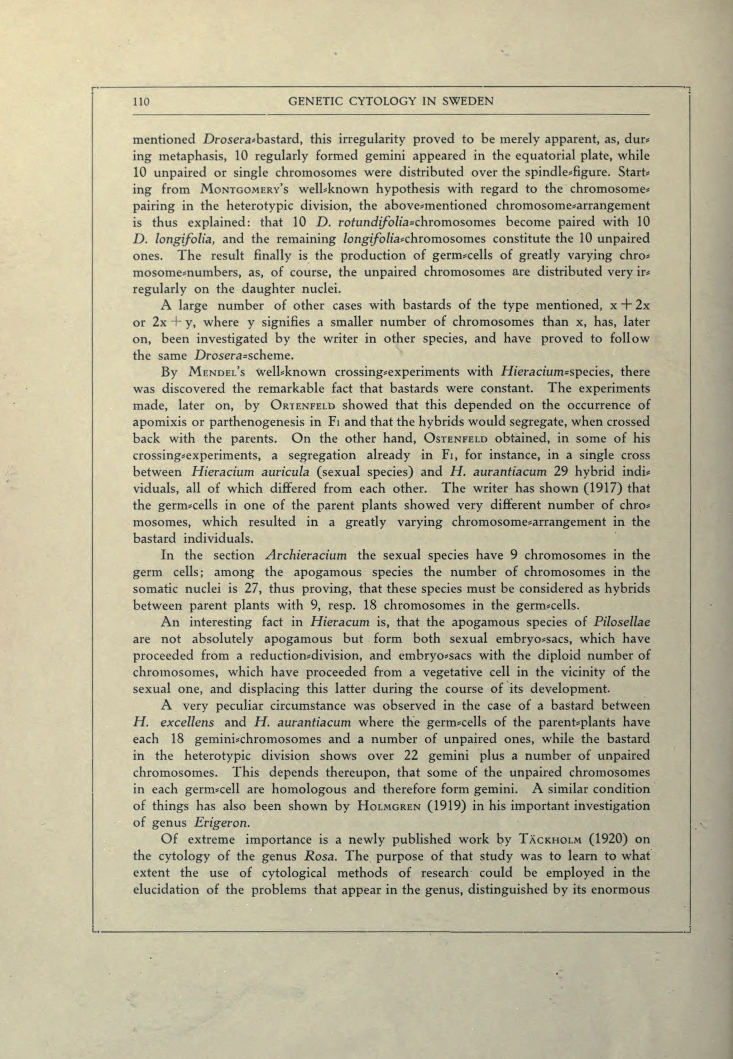 By Mendel’s welbknown crossing*experiments with Hieracium=species, there
