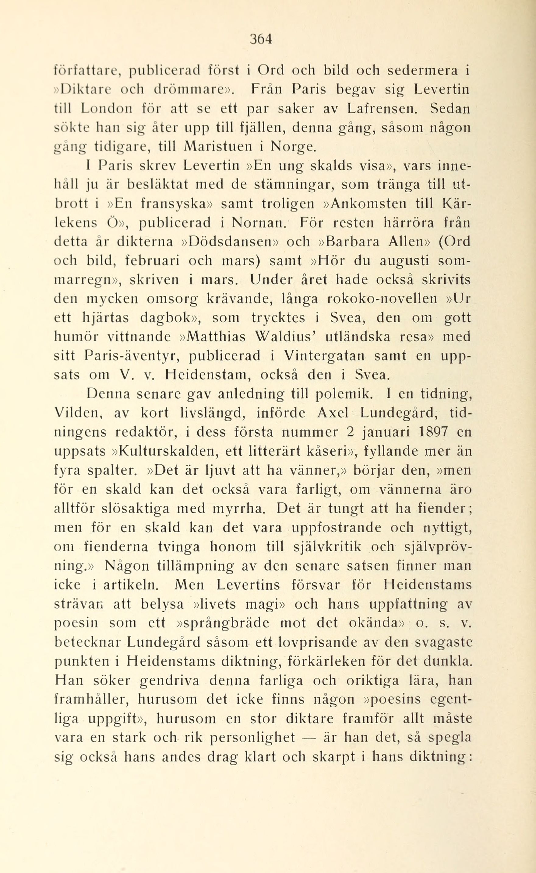 icke i artikeln. Men Levertins försvar för Heidenstams