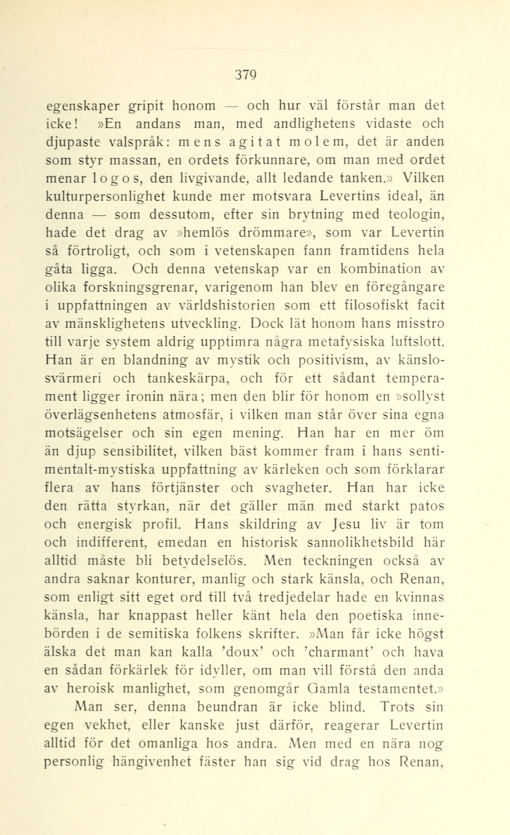 andra saknar konturer, manlig och stark känsla, och Renan,