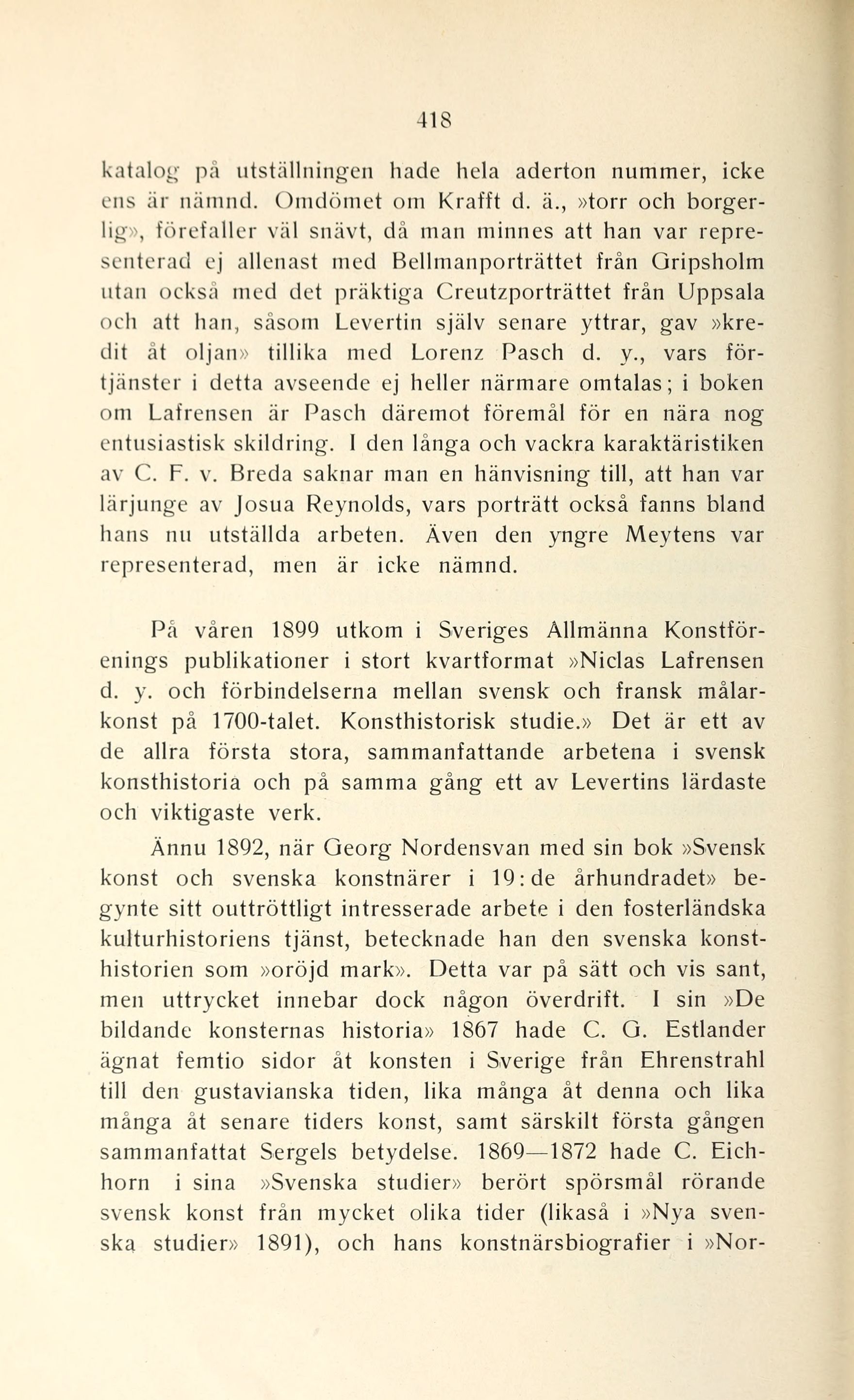 ens är nämnd. Omdömet om Krafft d. ä., »torr och