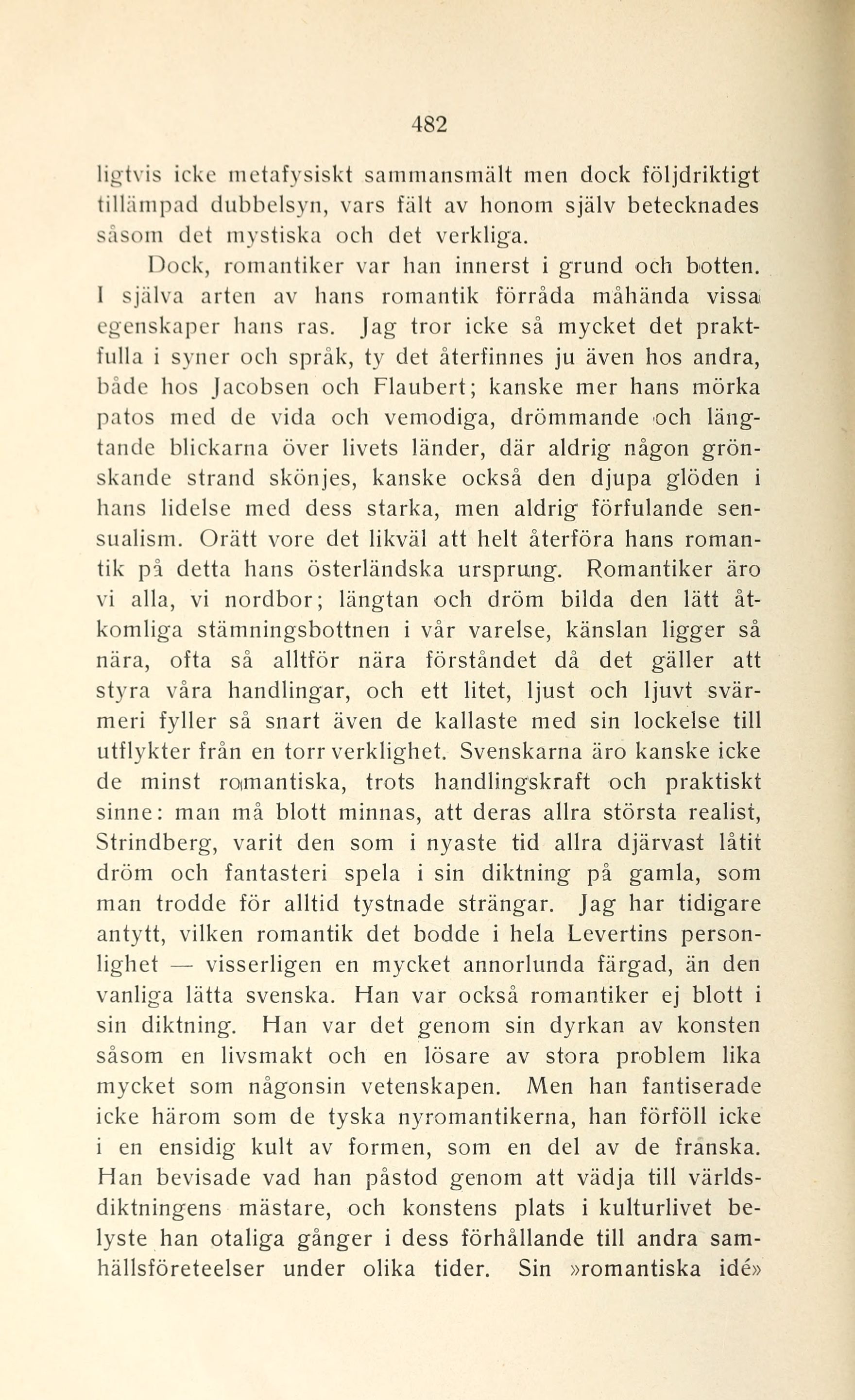 vanliga lätta svenska. Han var också romantiker ej blott i