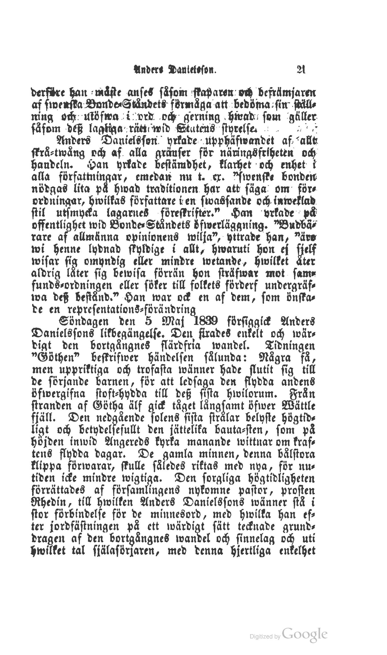 Söndagen den 5 Mai 1839 försiggick Anders