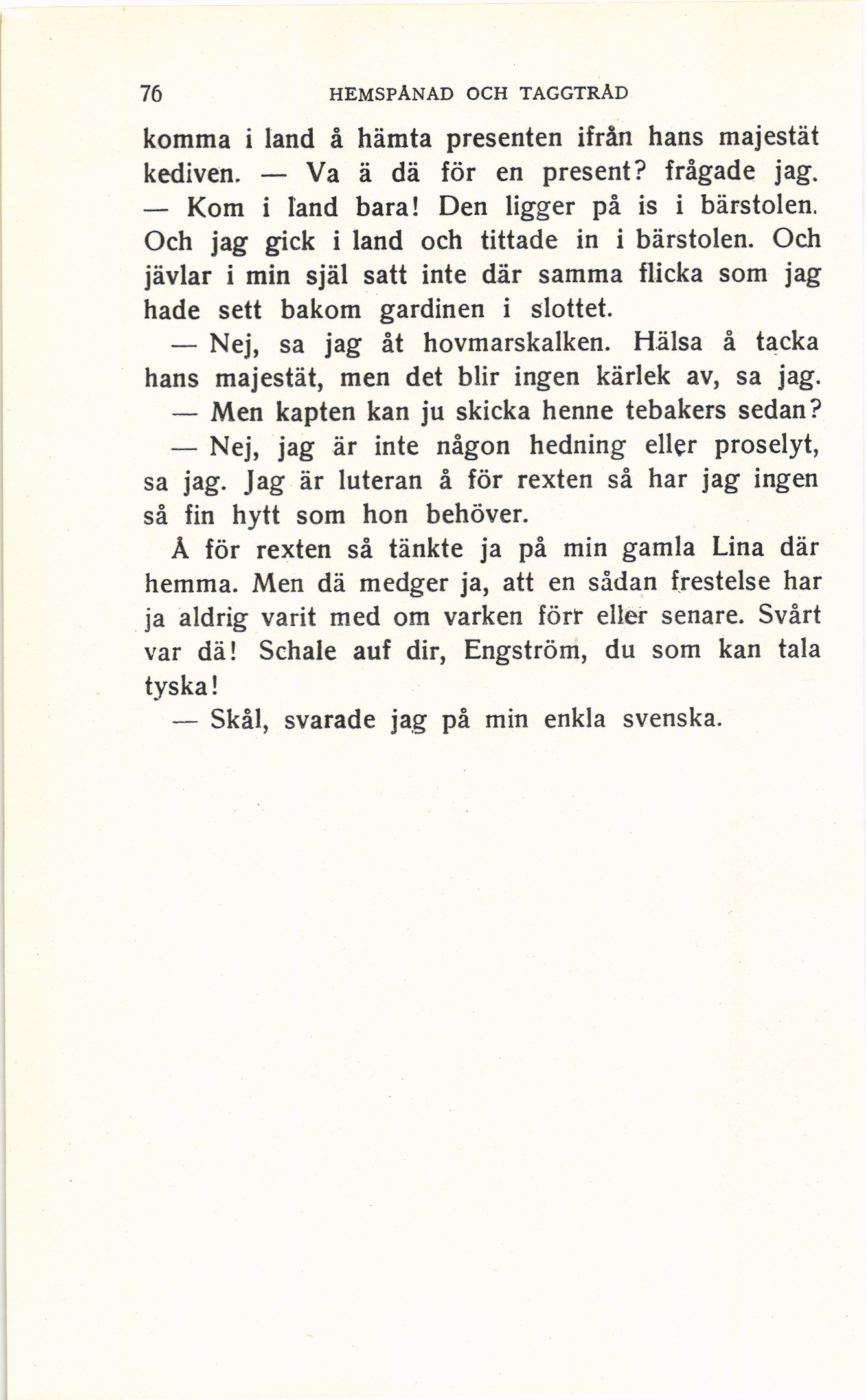 — Nej, sa jag åt hovmarskalken. Hälsa å tacka