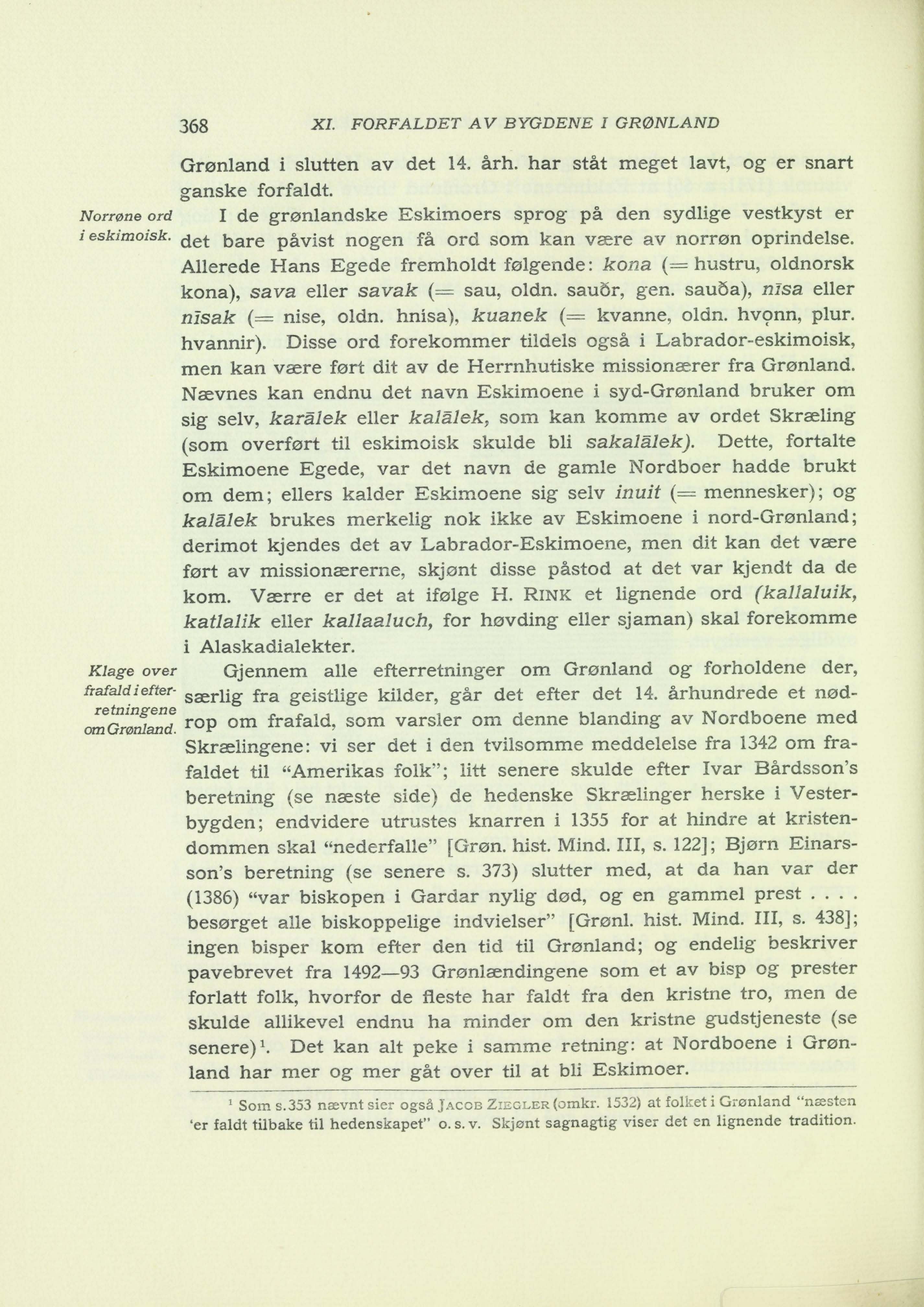 1 Som s.353 nævnt sier også Jacob Ziegler (omkr. 1532) at folket i Grønland “næsten