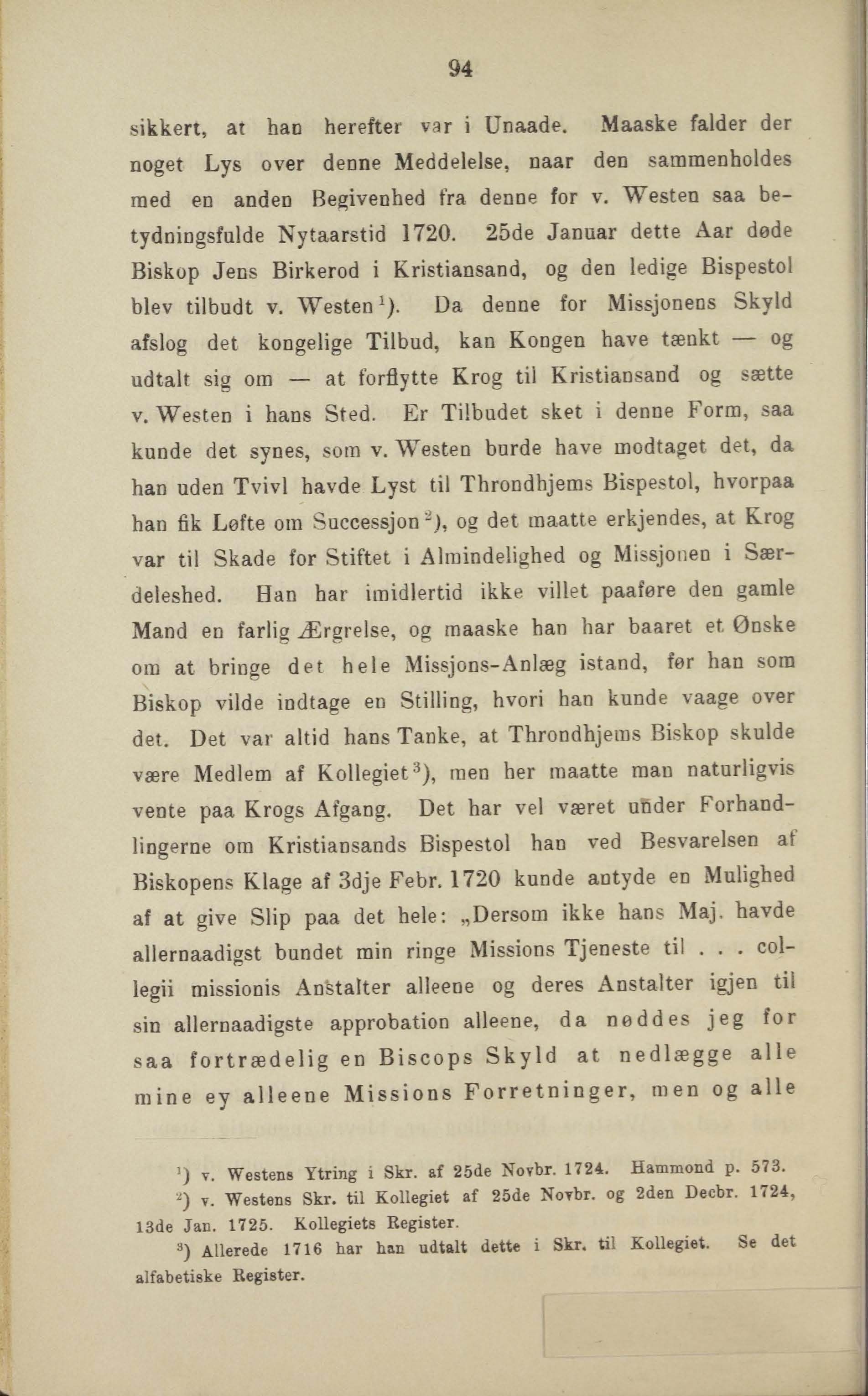 !) v. Westens Ytring i Skr. af 25de Novbr. 1724. Hammond p. 573.
