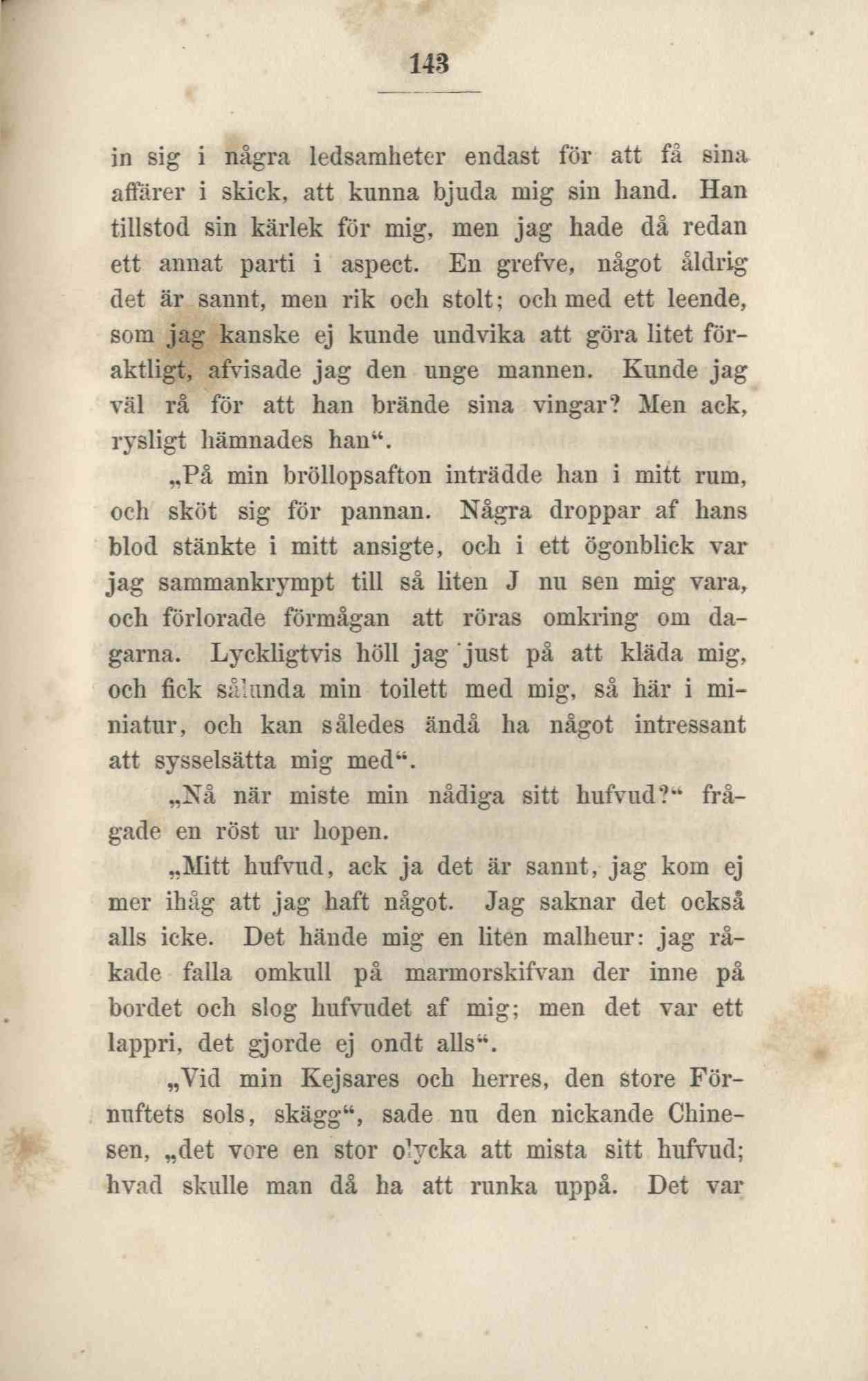 sen, „det vore en stor o’yeka att mista sitt hufvud;