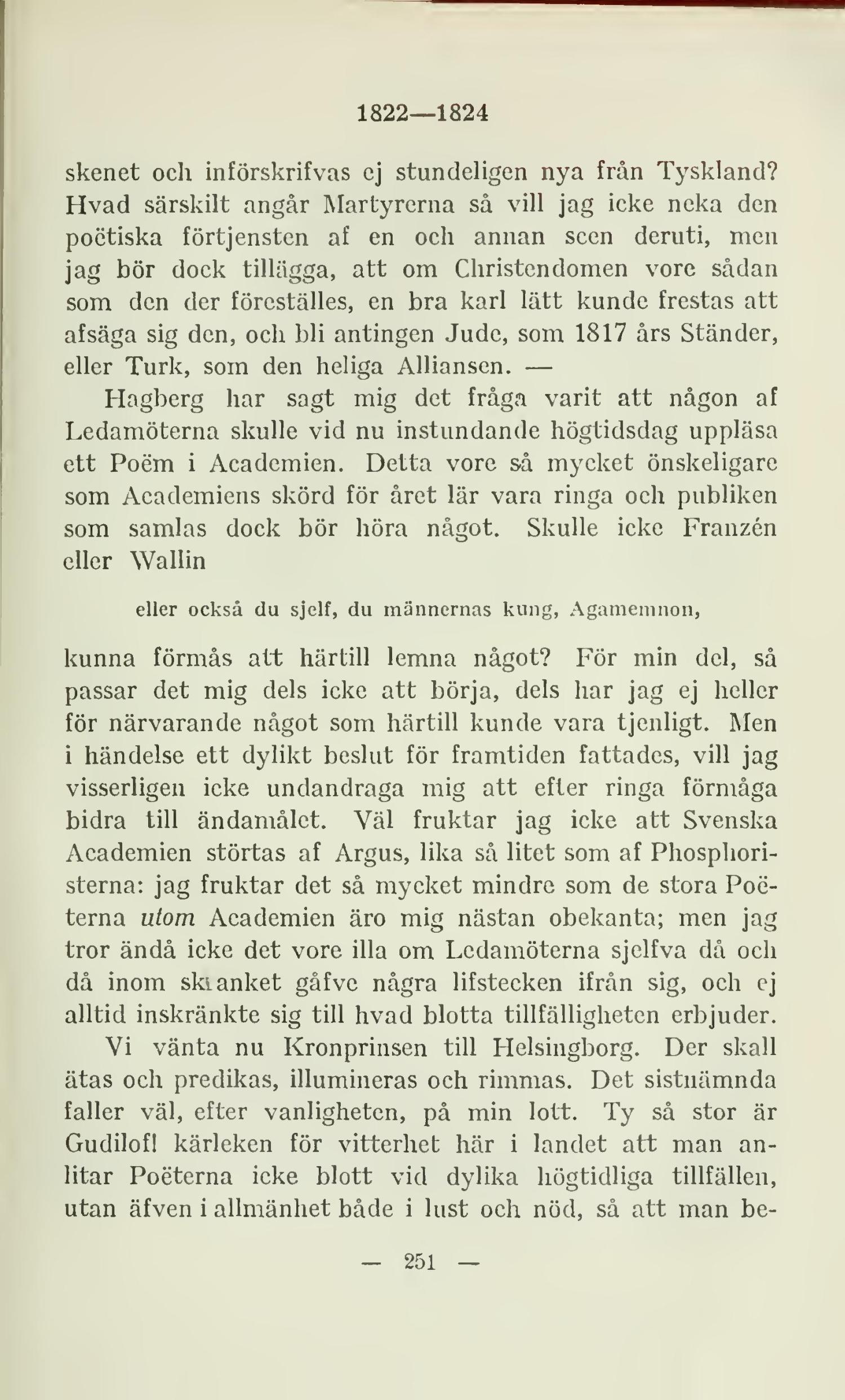 Poeterna utom Academien äro mig nästan obekanta; men jag