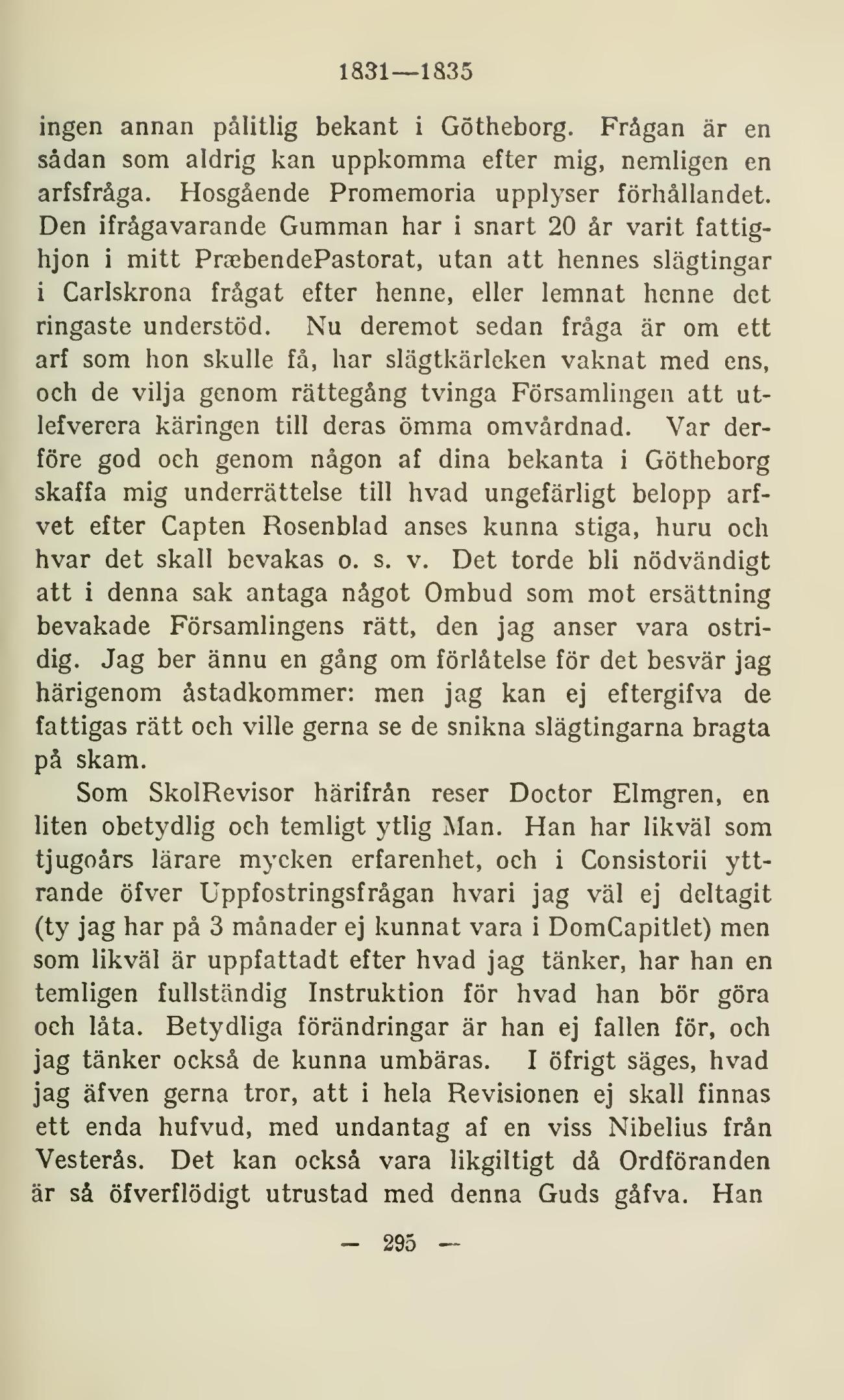 arfvet efter Capten Rosenblad anses kunna stiga, huru och