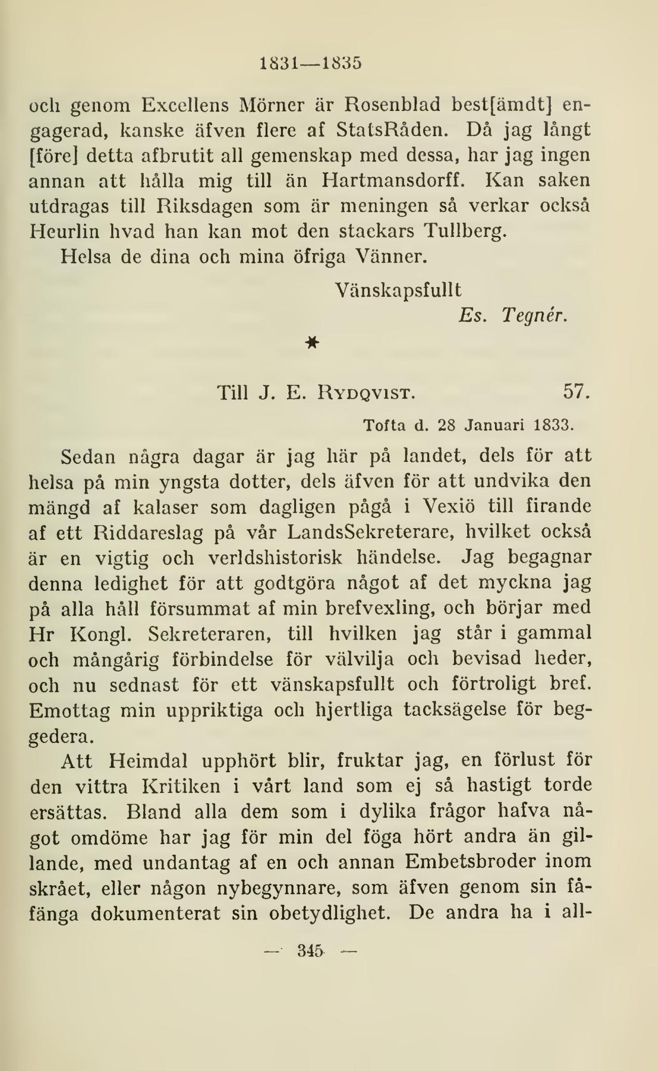 och nu sednast för ett vänskapsfullt och förtroligt bref.