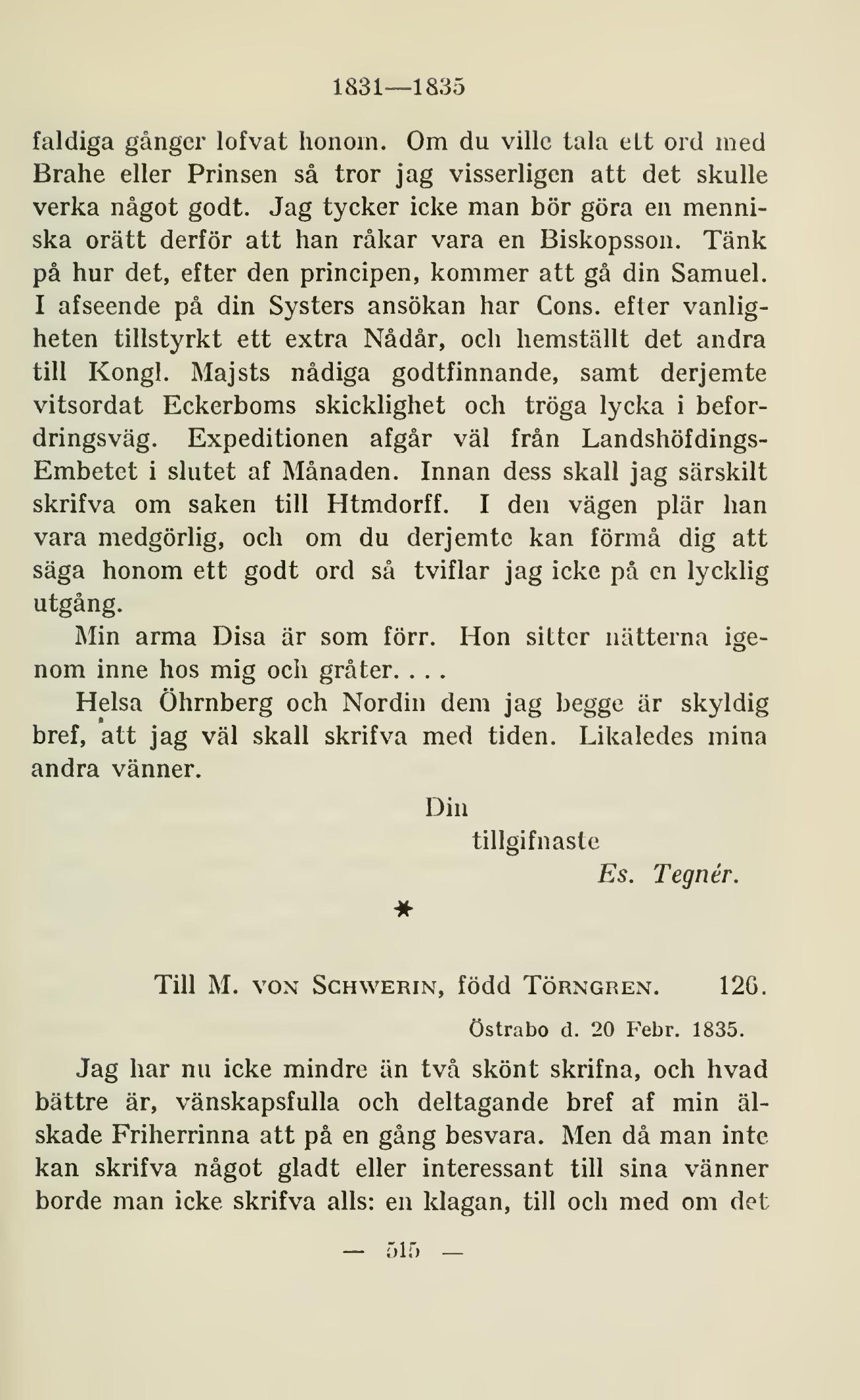 Östrabo d. 20 Febr. 1835.