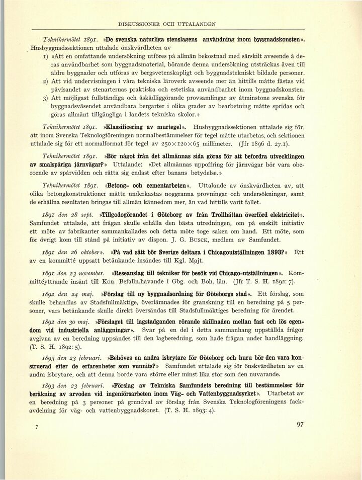 Teknikermötet 1891. »De svenska naturliga stenslagens användning inom byggnadskonsten».