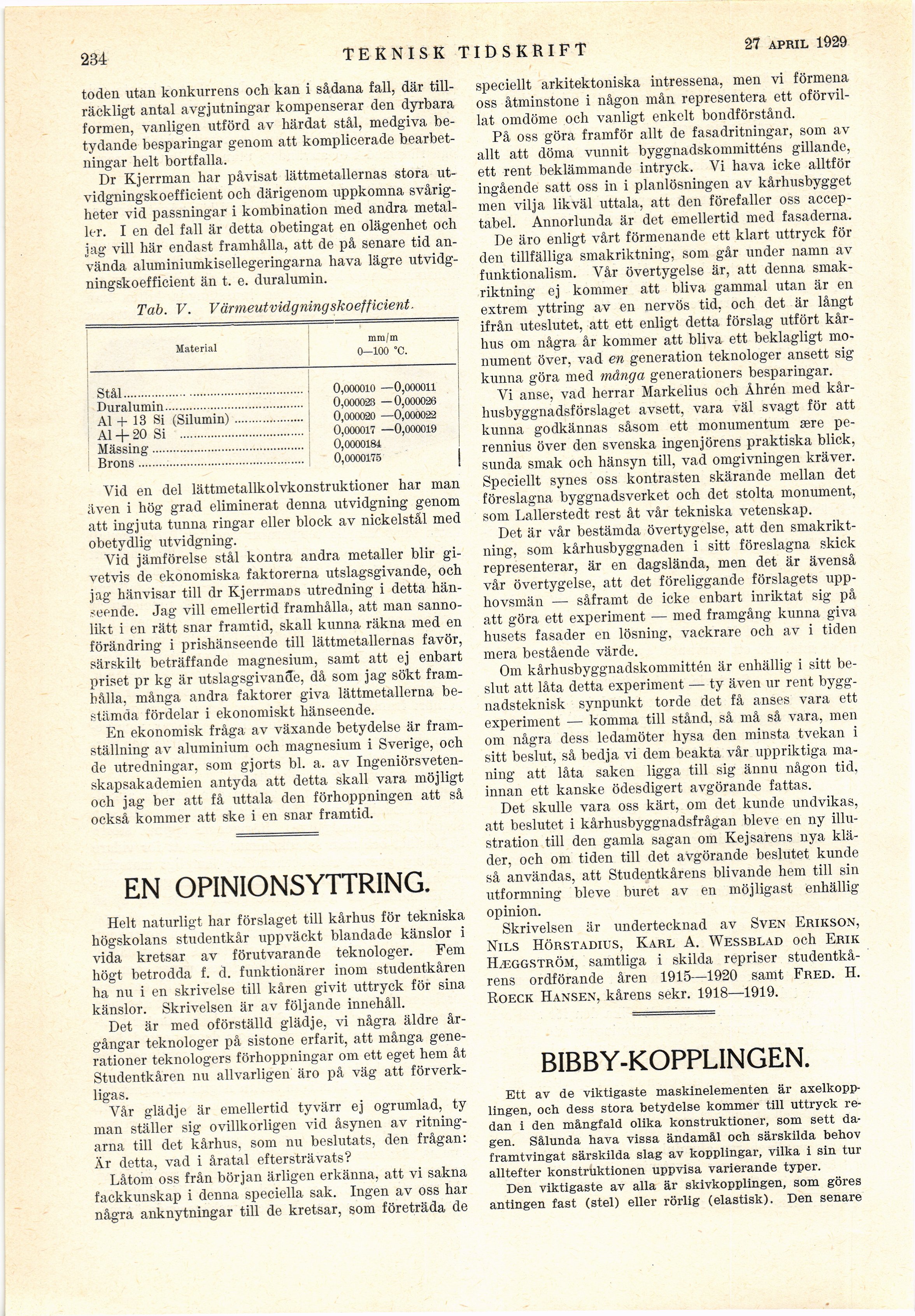 Full resolution (JPEG) - On this page / på denna sida - Häfte 17. 27 april 1929 - Stål kontra andra metaller, speciellt lättmetaller, av W. Dan. Bergman - En opinionsyttring - Bibby-kopplingen