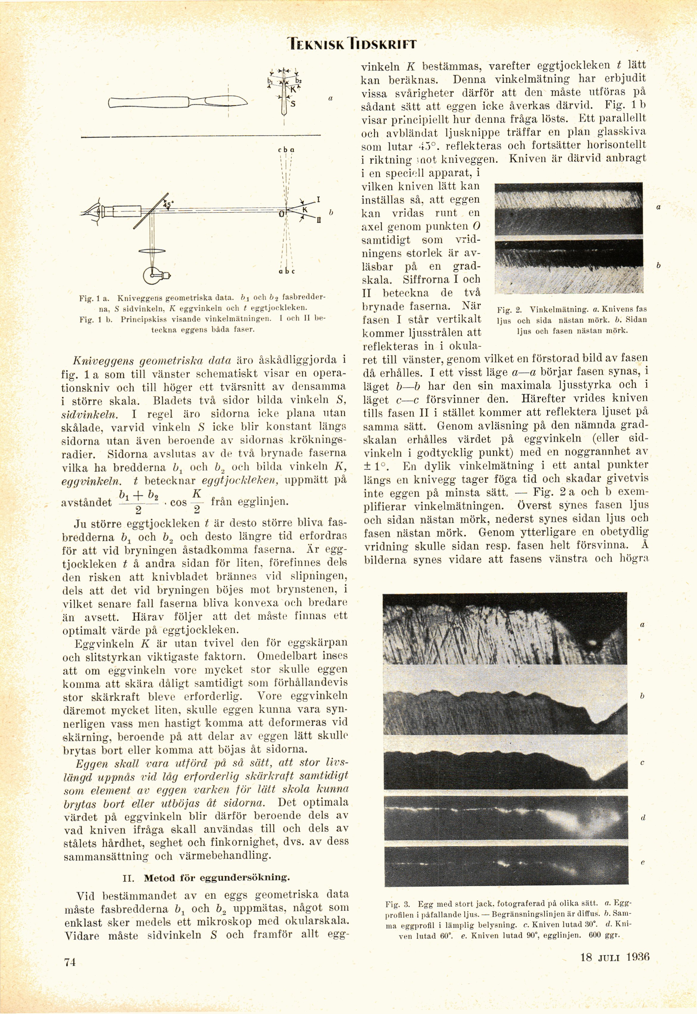 vinkeln K bestämmas, varefter eggtjockleken t lätt
