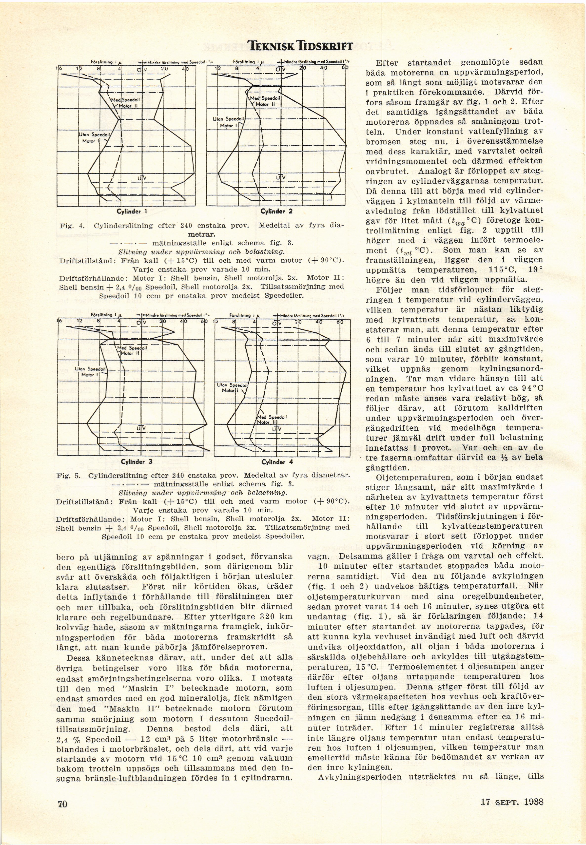 Driftsförhållande: Motor I: Shell bensin, Shell motorolja 2x. Motor II: