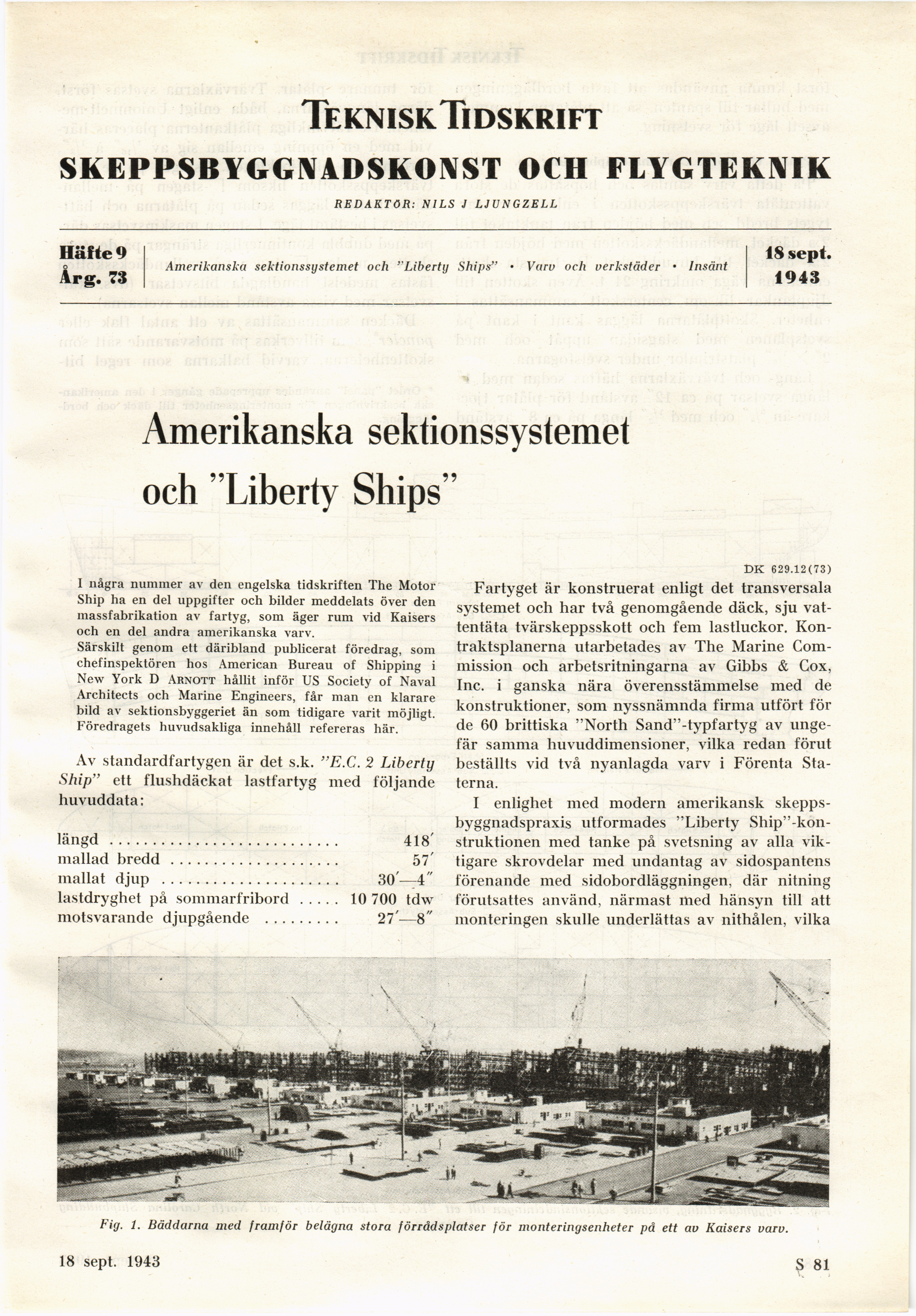 Amerikanska sektionssystemet och ’ Liberty Ships" • Varv och verkstäder • Insänt