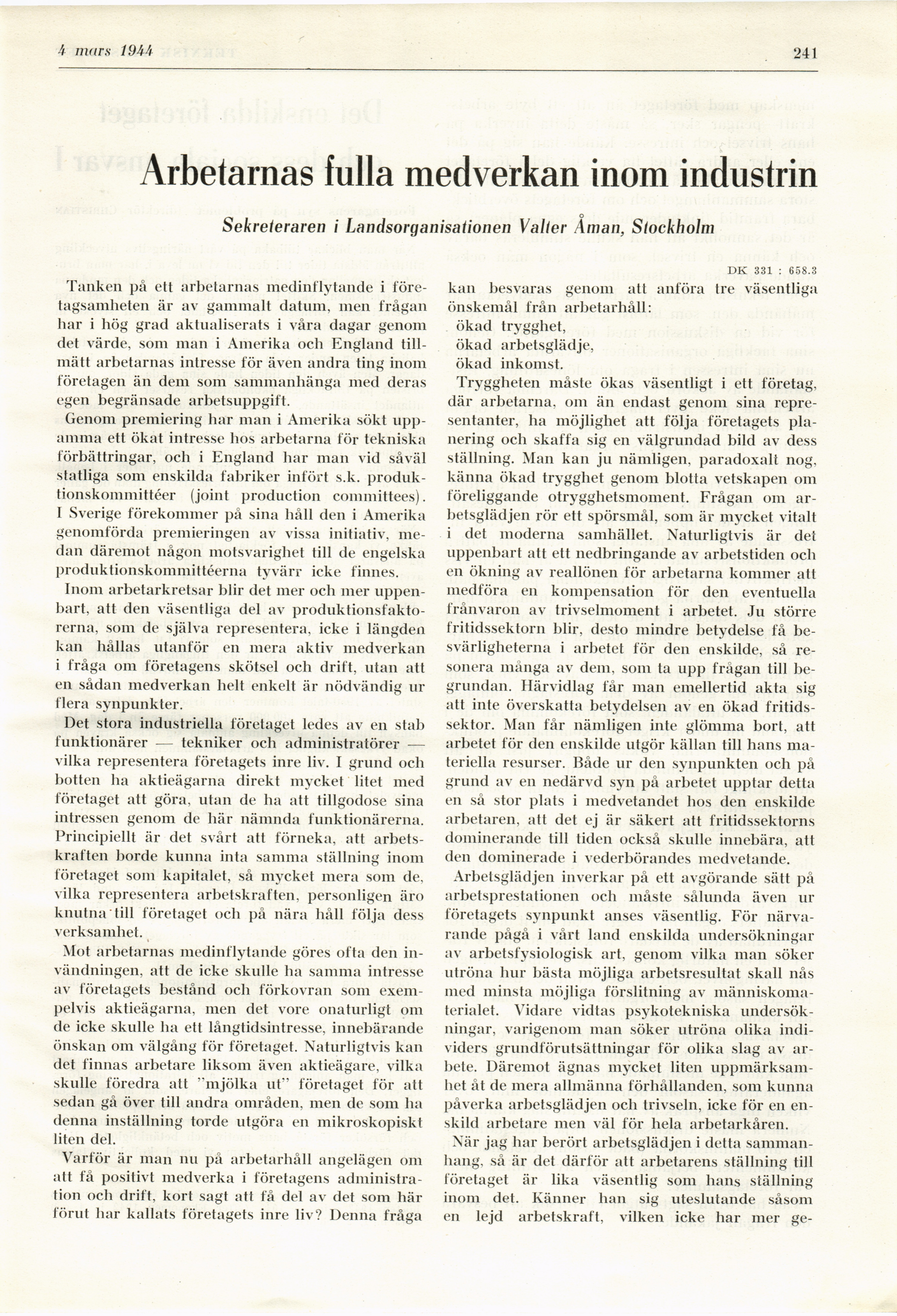Full resolution (JPEG) - On this page / på denna sida - H. 9. 4 mars 1944 - Arbetarnas fulla medverkan inom industrin, av Valter Åman