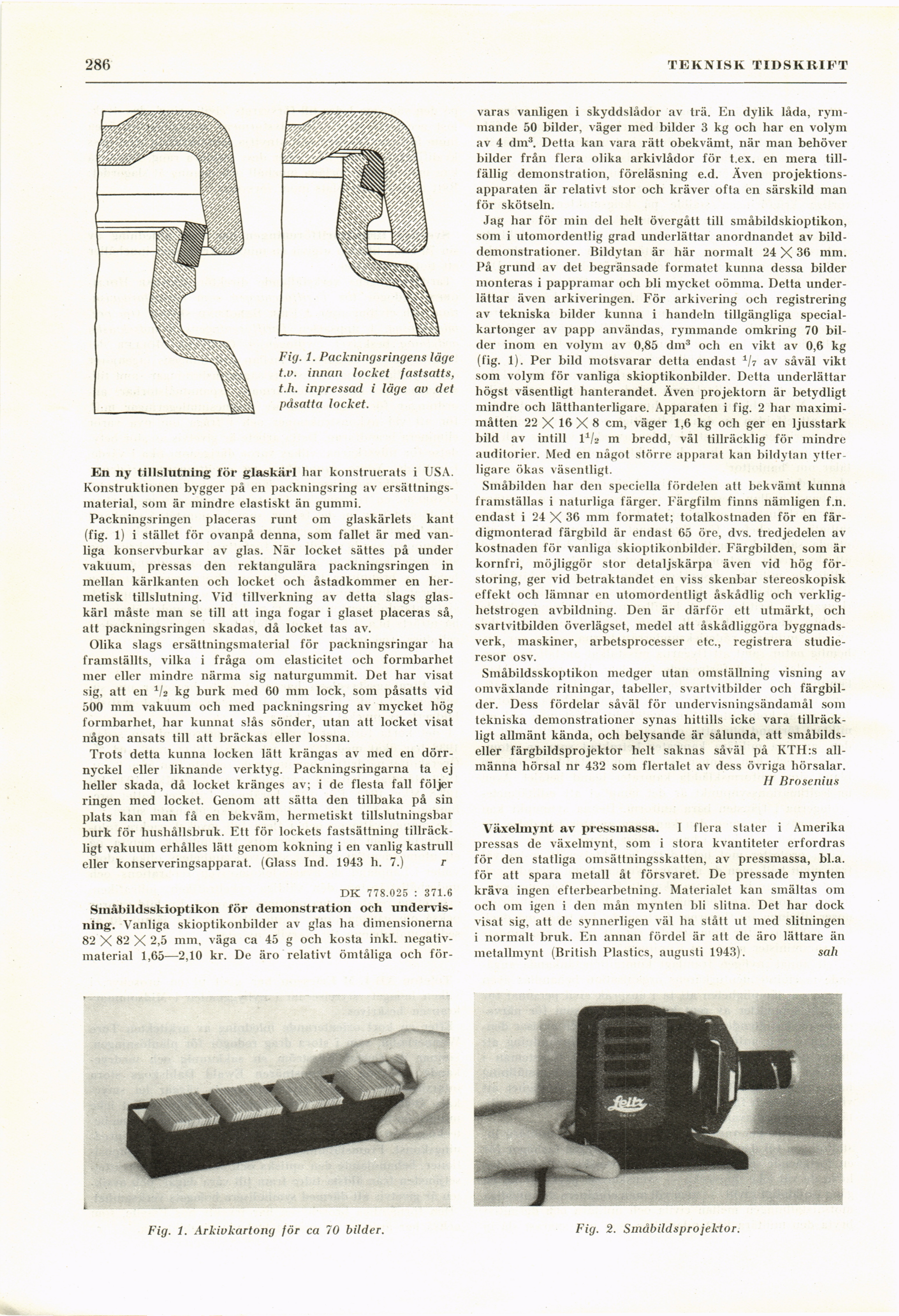 Full resolution (JPEG) - On this page / på denna sida - H. 10. 11 mars 1944 - En ny tillslutning för glaskärl, av r - Småbildsskioptikon för demonstration och undervisning, av H Brosenius - Växelmynt av pressmassa, av sah