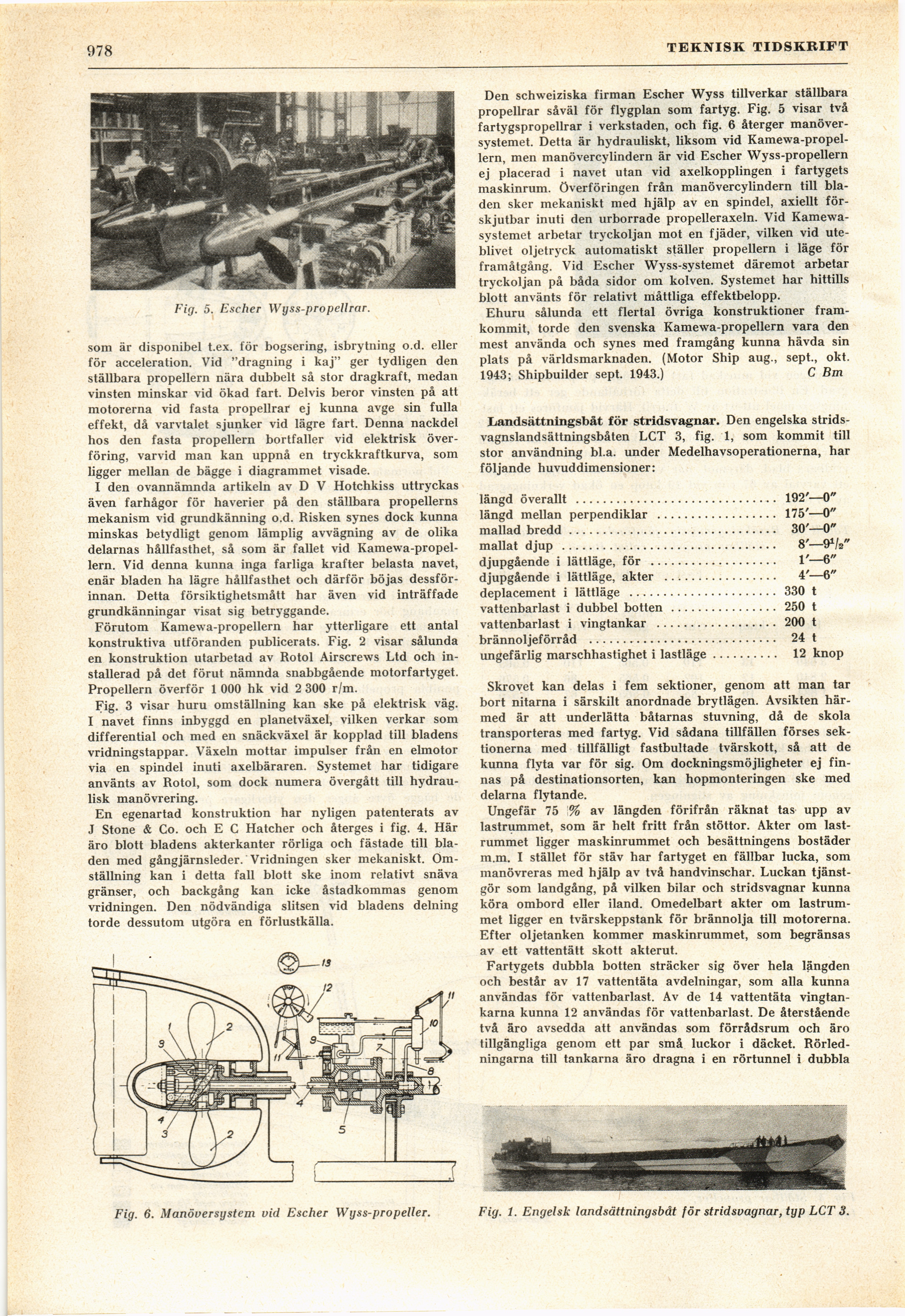 Full resolution (JPEG) - On this page / på denna sida - H. 33. 19 augusti 1944 - Propellrar med vridbara blad, av C Bm - Landsättningsbåt för stridsvagnar, av T W—th
