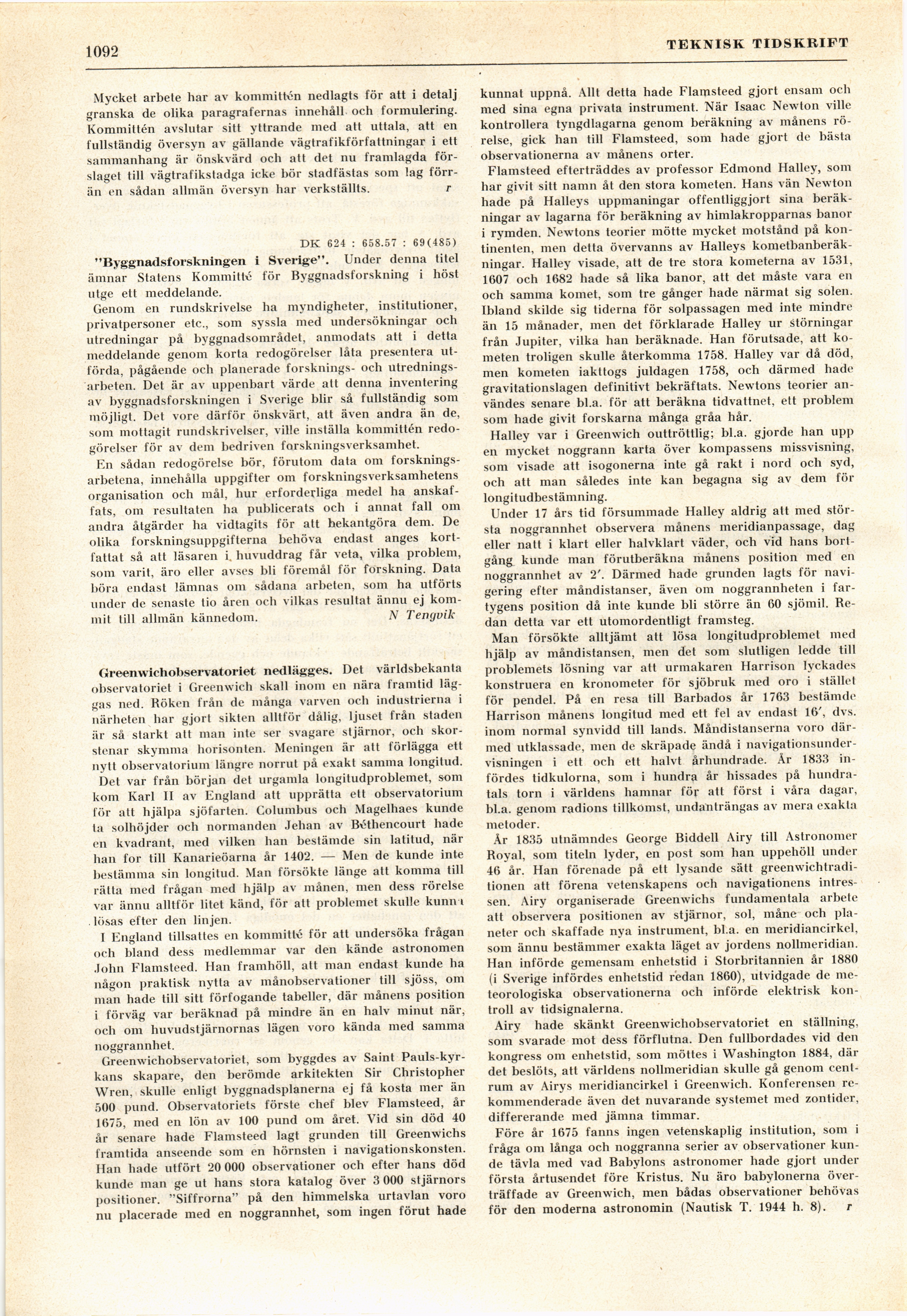Full resolution (JPEG) - On this page / på denna sida - H. 38. 23 september 1944 - Förslaget till ny vägtrafikstadga, av r - »Byggnadsforskningen i Sverige», av N Tengvik - Greenwichobservatoriet nedlägges, av r