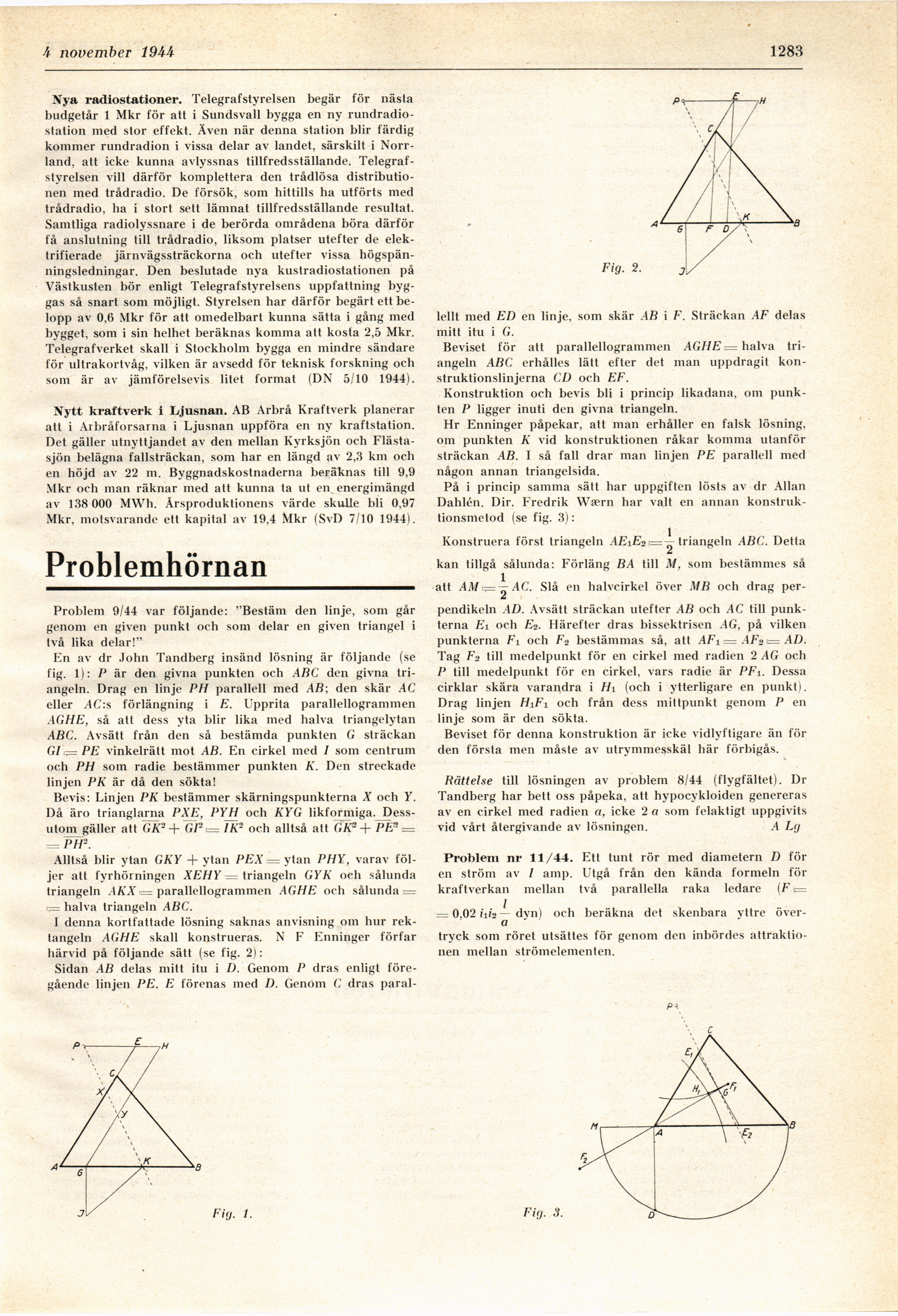 Full resolution (JPEG) - On this page / på denna sida - H. 44. 4 november 1944 - Nya radiostationer - Nytt kraftverk i Ljusnan - Problemhörnan, av A Lg
