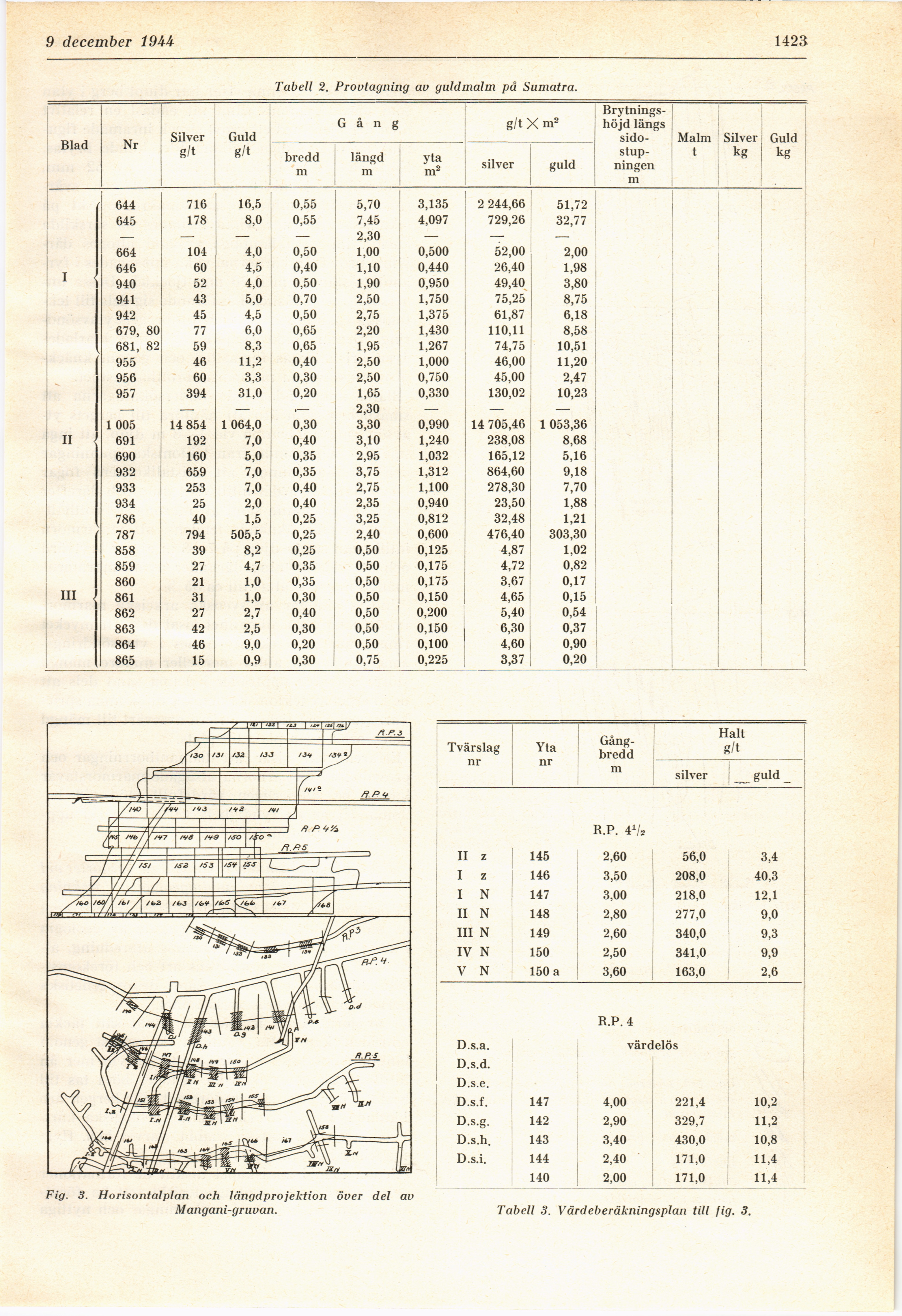 Blad Nr Silver Guld Gång g/t X m2 [-Brytnings-höjd-] {+Brytnings- höjd+} längs sido- Malm Silver Guld
