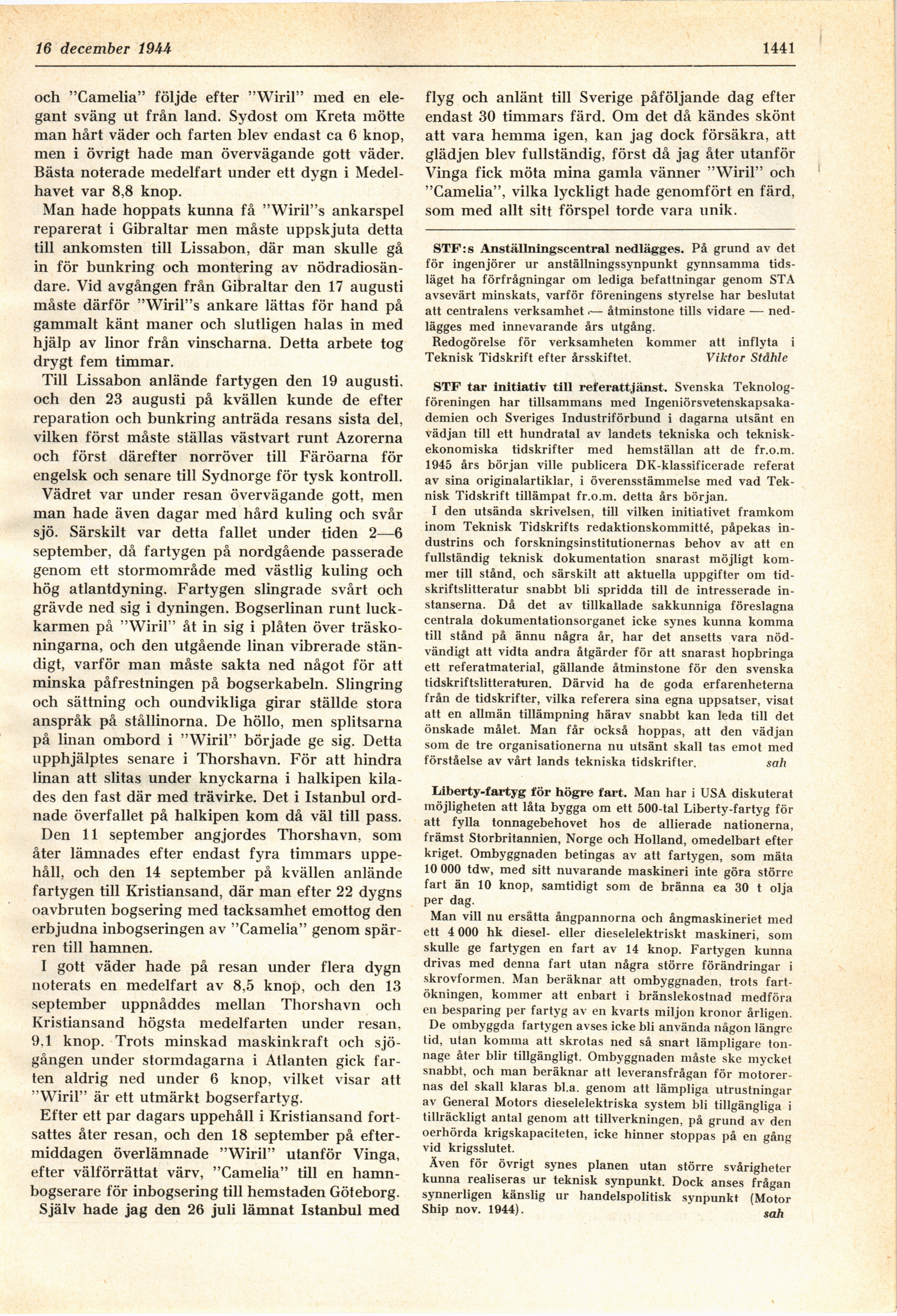Full resolution (JPEG) - On this page / på denna sida - H. 50. 16 december 1944 - Ett bärgningsäventyr i krigstid, av Allan Zander - STF:s Anställningscentral nedlägges, av Viktor Ståhle - STF tar initiativ till referattjänst, av sah - Liberty-fartyg för högre fart, av sah