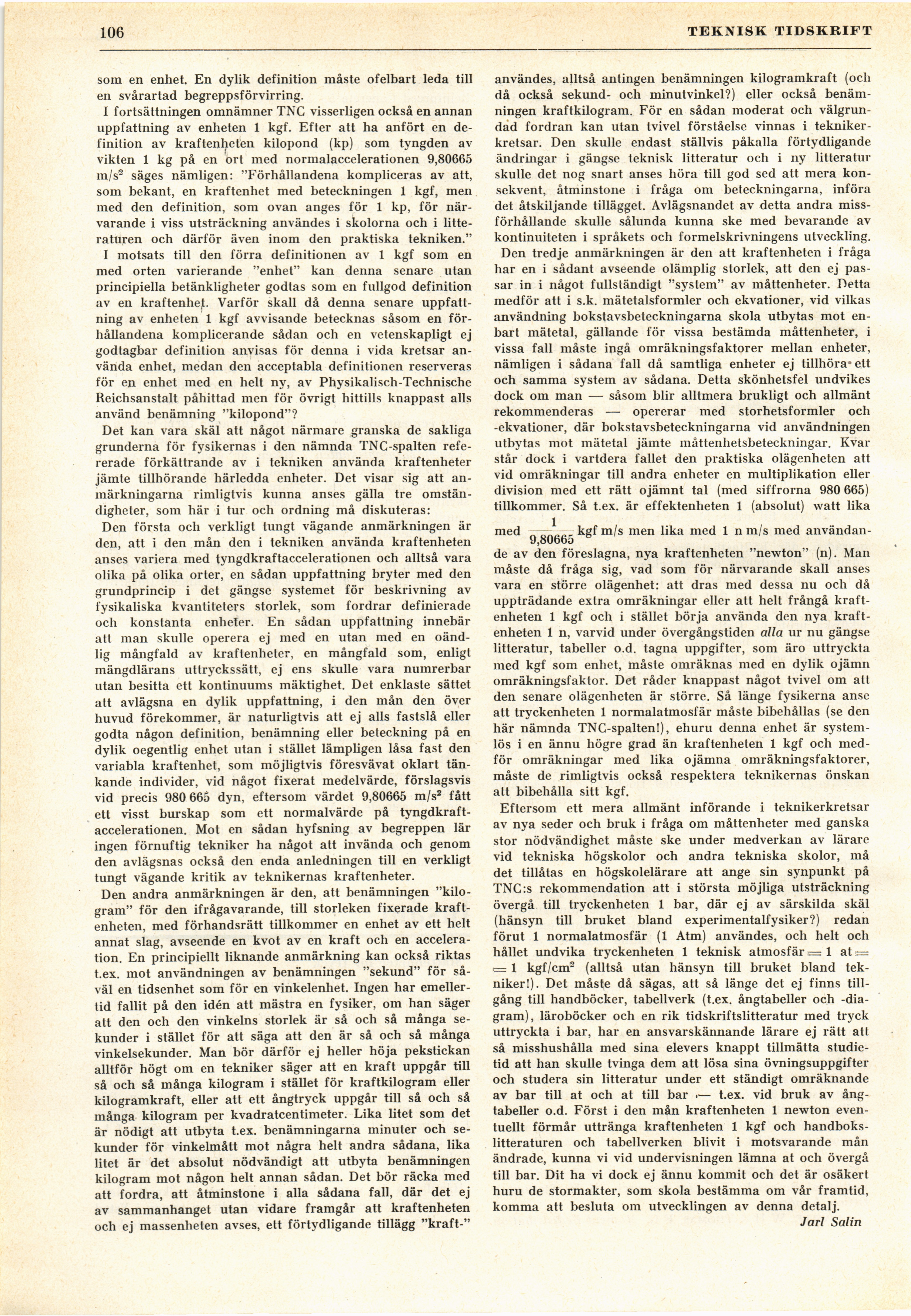 uppfattning av enheten 1 kgf avvisande betecknas såsom en