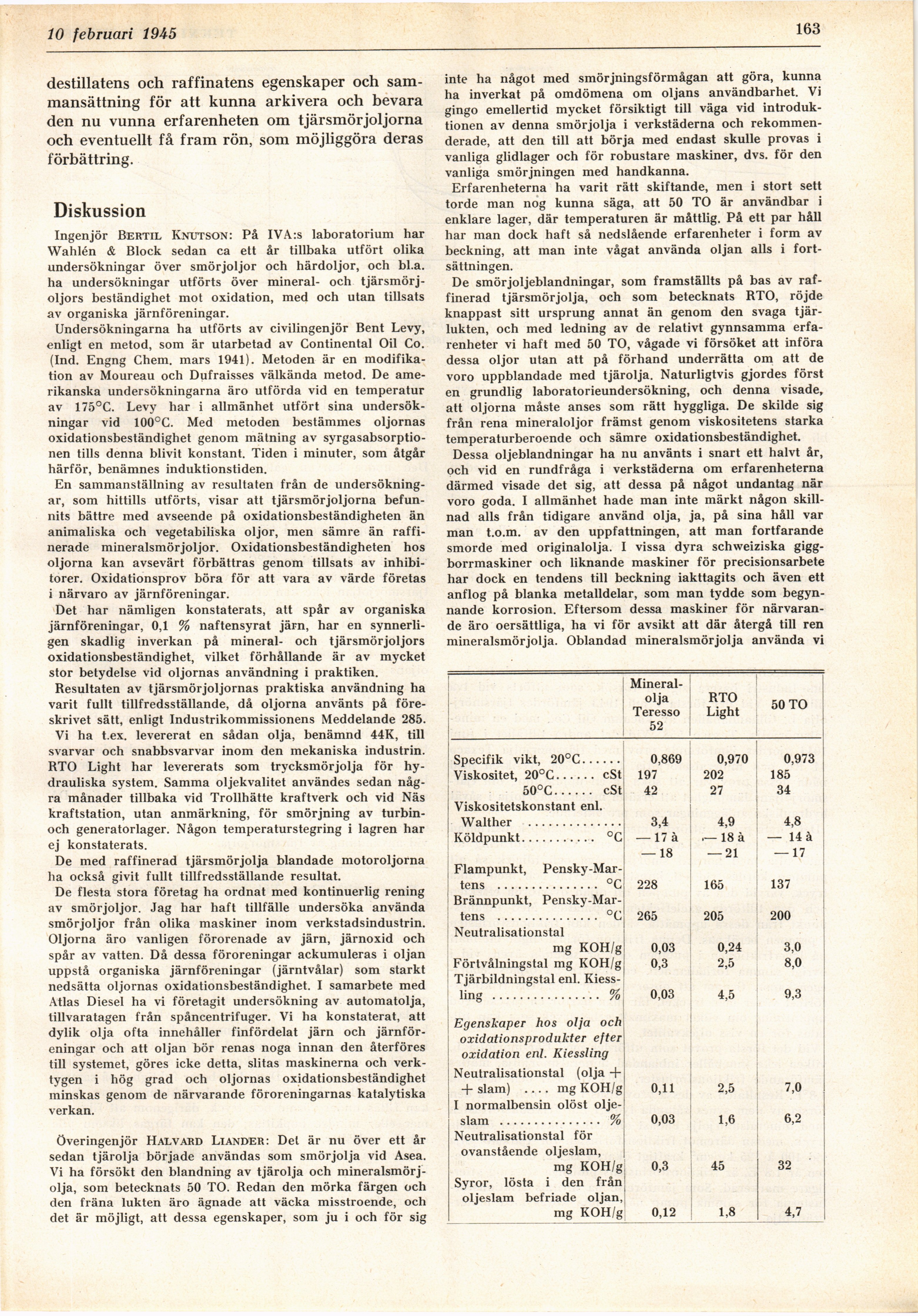 Full resolution (JPEG) - On this page / på denna sida - H. 6. 10 februari 1945 - Användning av tjärsmörjoljor, av Evert Norlin - Diskussion, av Bertil Knutson, Halvard Liander, Torsten Montelius