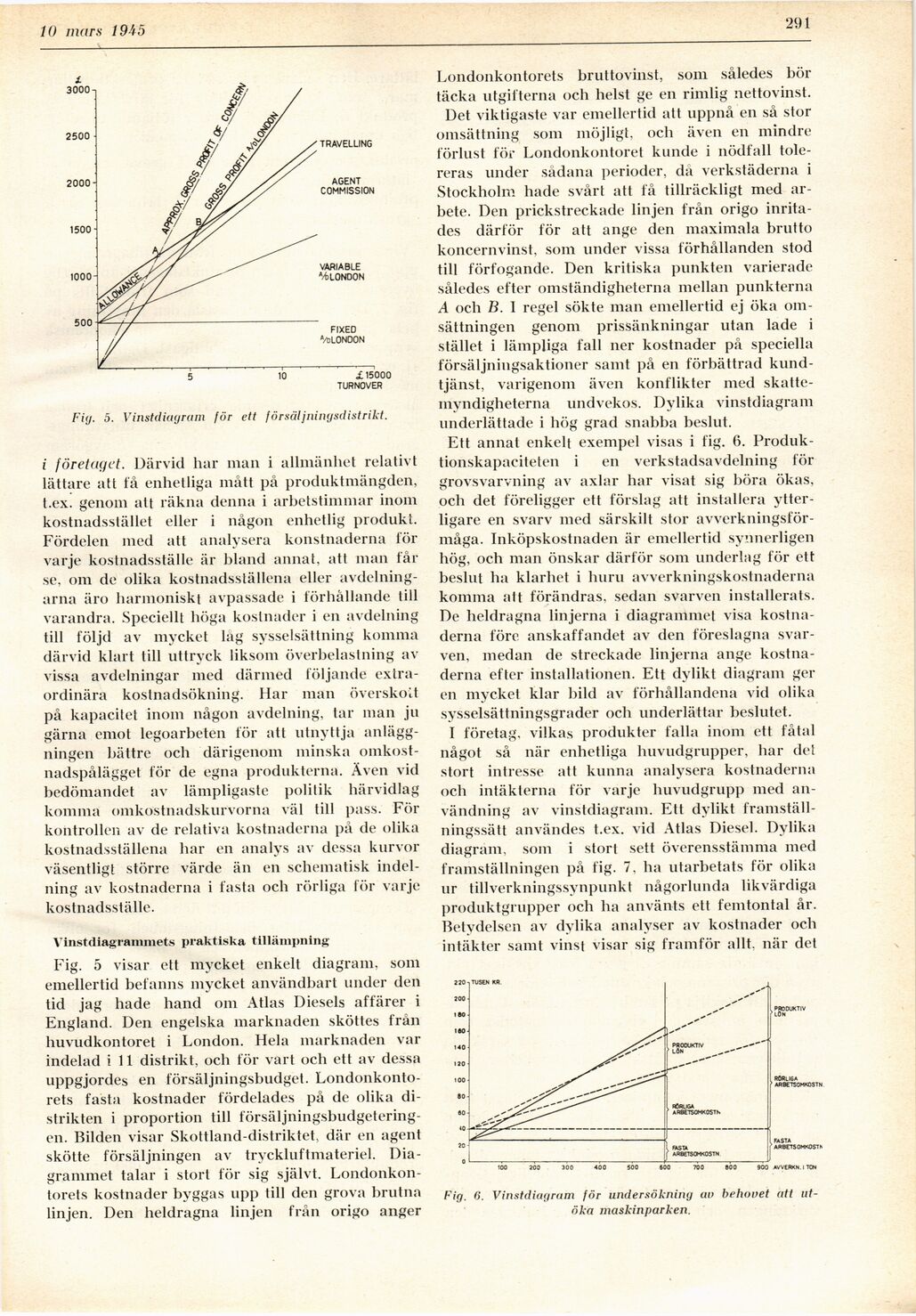Full resolution (JPEG) - On this page / på denna sida - H. 10. 10 mars 1945 - Analys av intäkter, kostnader och vinst vid varierande sysselsättningsgrad, av Herman Pyk