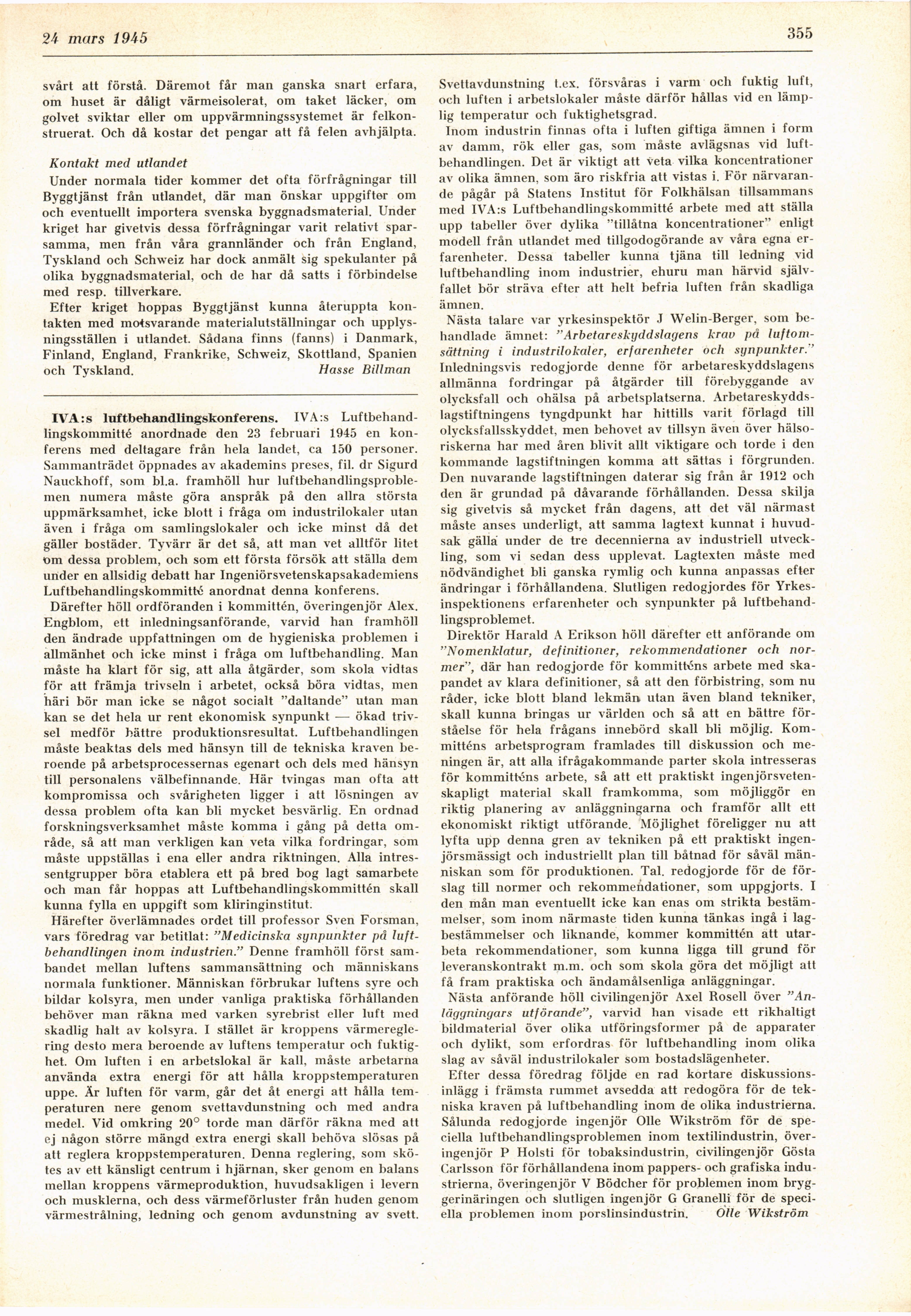 Full resolution (JPEG) - On this page / på denna sida - H. 12. 24 mars 1945 - Byggtjänst 10 år — och litet till, av Hasse Billman - IVA:s luftbehandlingskonferens, av Olle Wikström