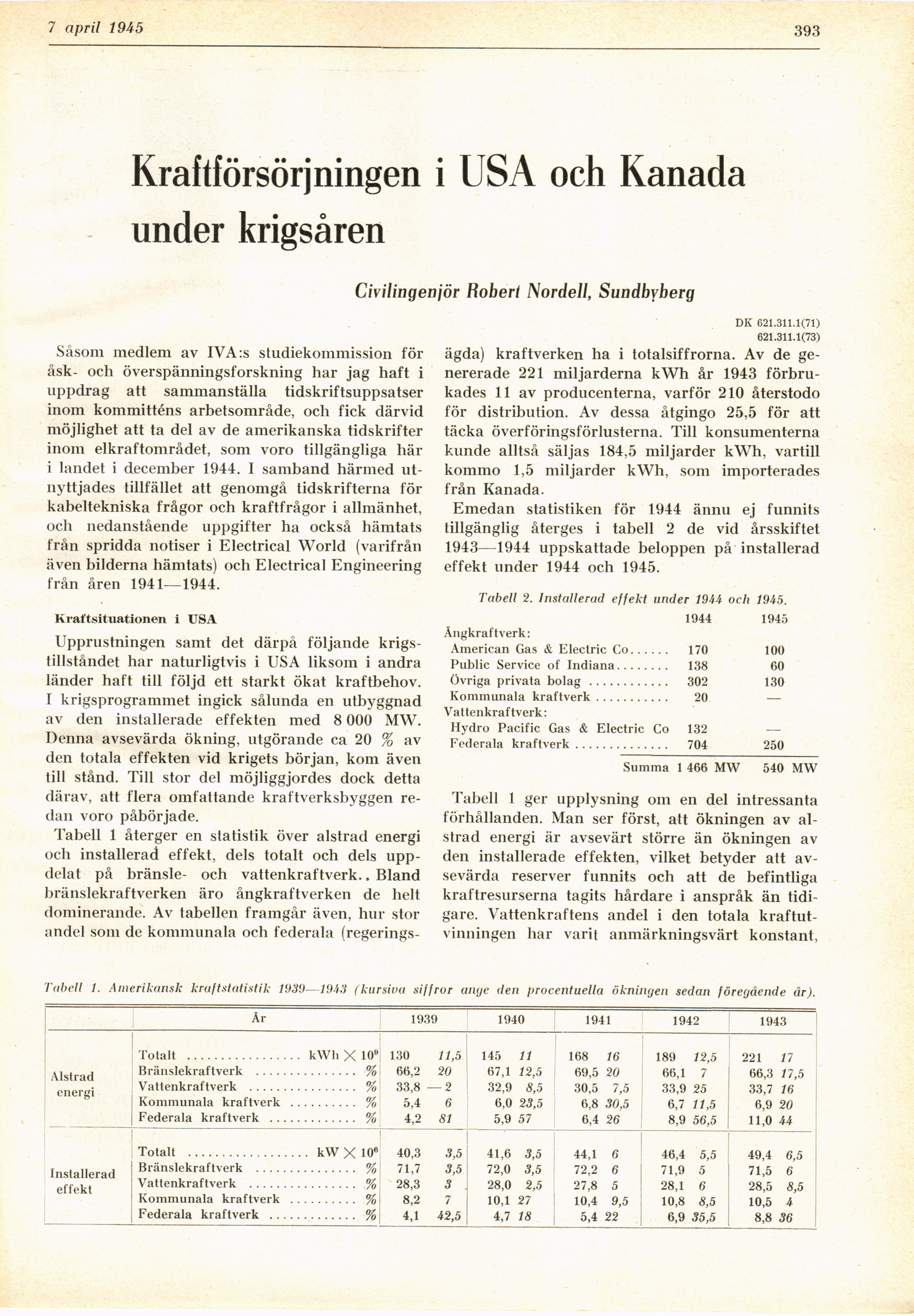 Full resolution (JPEG) - On this page / på denna sida - H. 14. 7 april 1945 - Kraftförsörjningen i USA och Kanada under krigsåren, av Robert Nordell